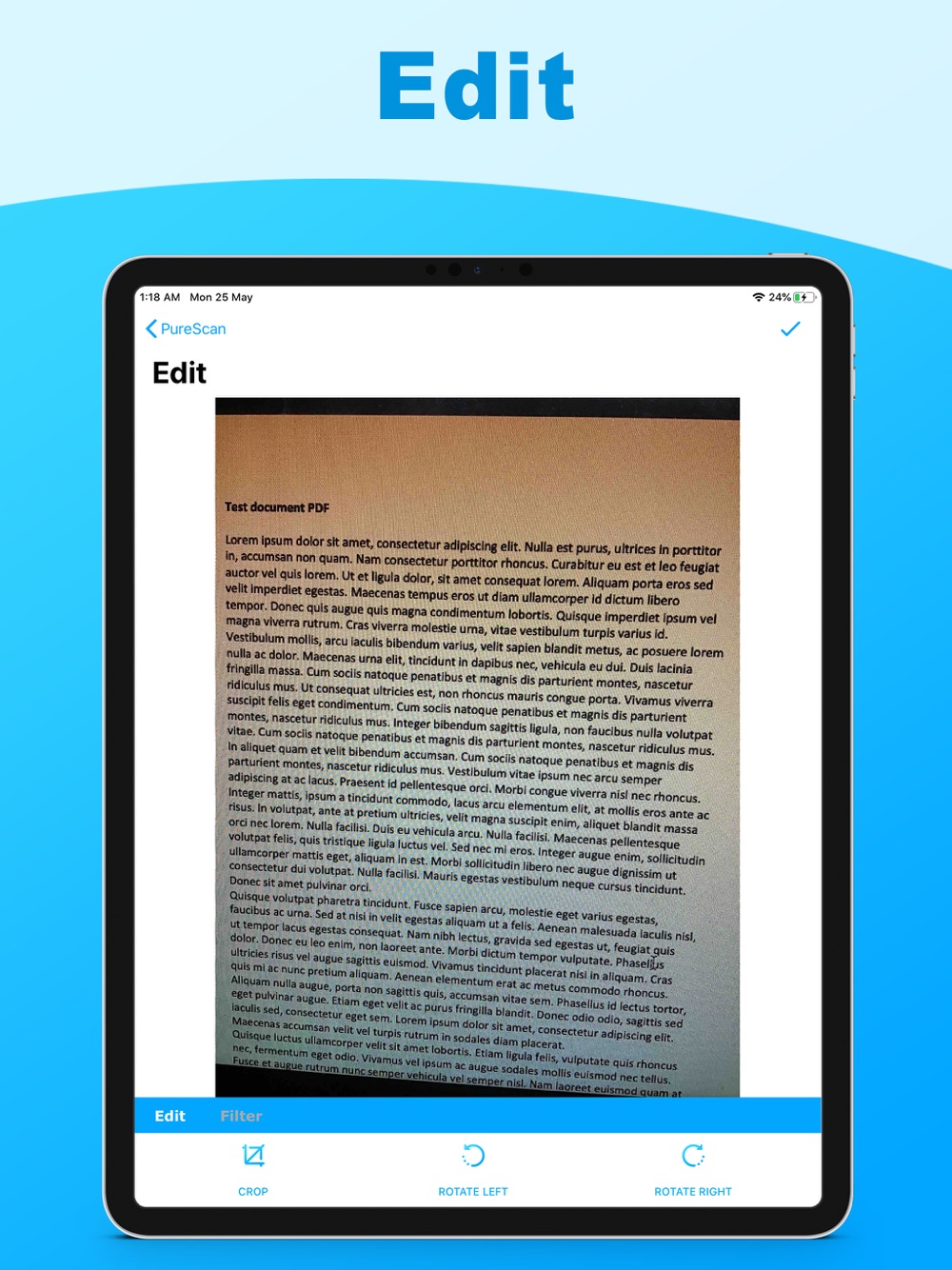 Scan anything you need including receipts, documents, paper notes, fax papers, contracts, book and store your scans as multipage PDF or JPEG files.