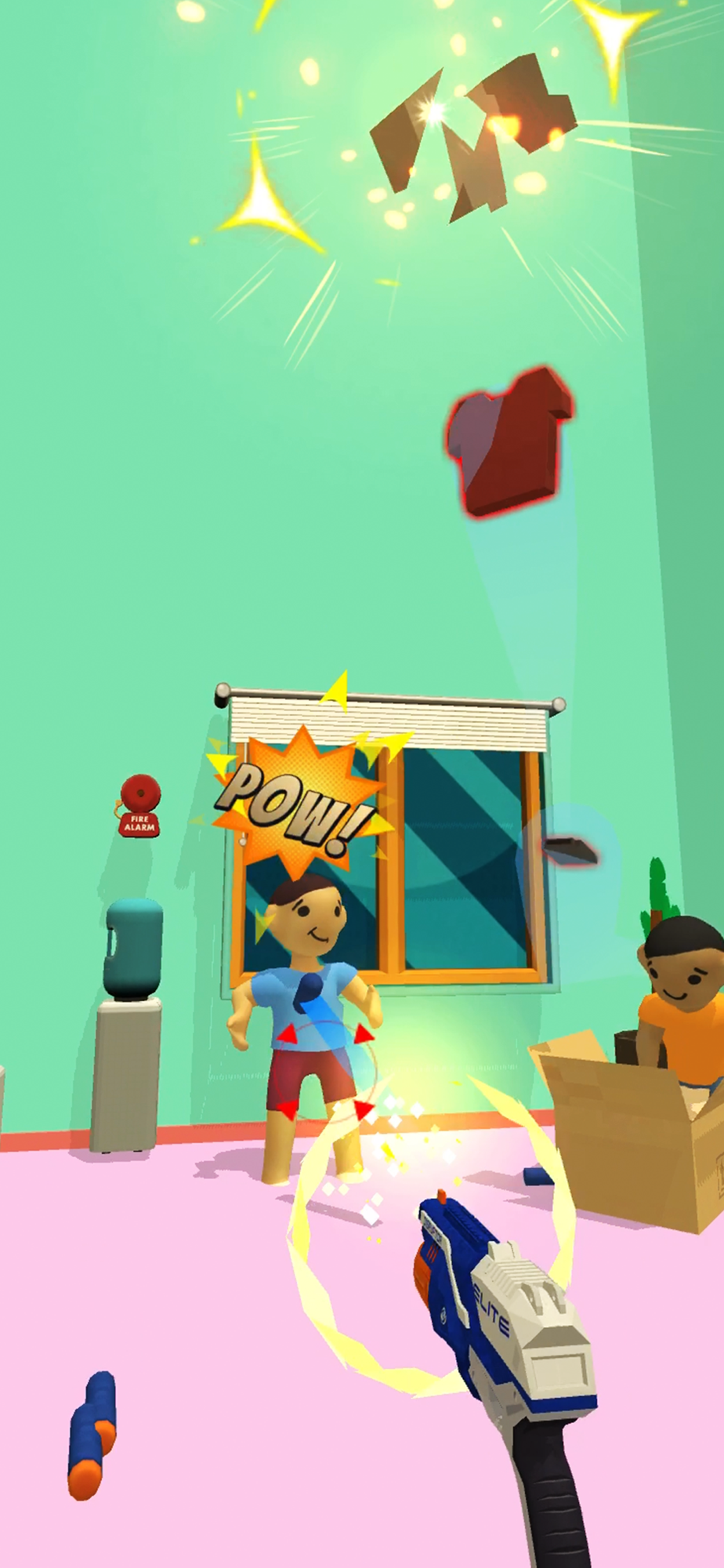 Can you shoot everything your colleagues throw in the air? Find out how quick your reaction is in a fun office prank war