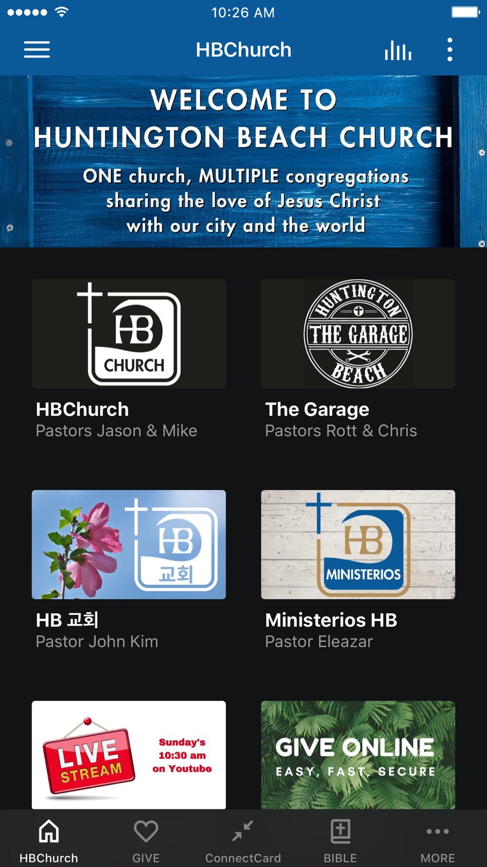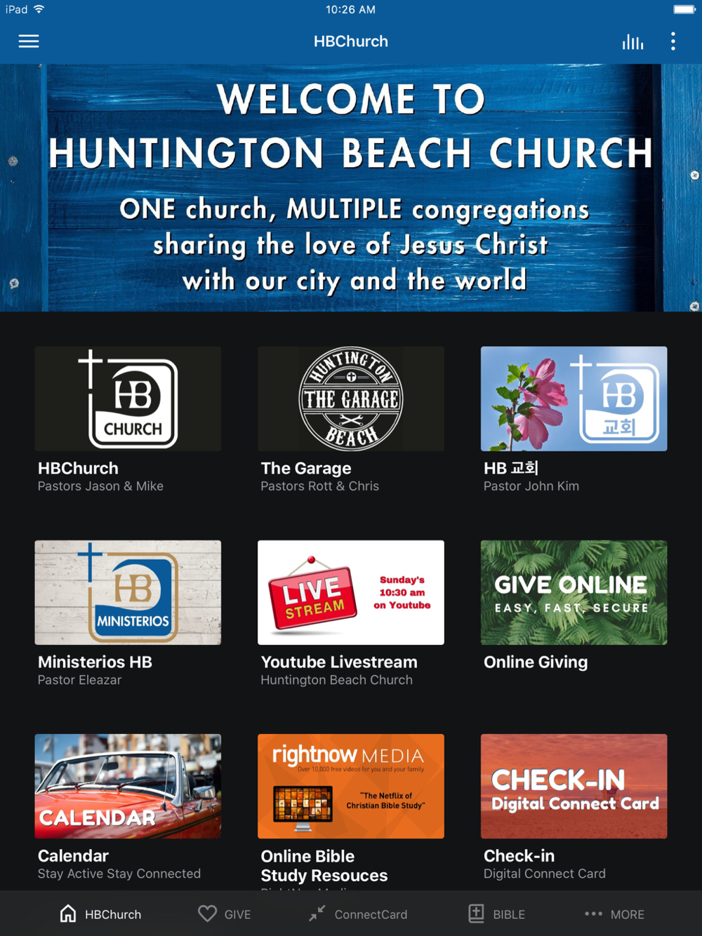 This app makes it easy to connect with Huntington Beach Church. You can check-in, leave a response, ask a question, request prayer, watch media, give online, access the ministry calendar, and much more.