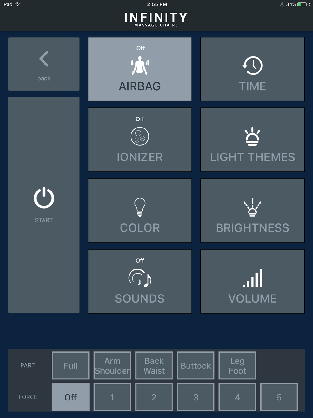 The Infinity massage chairs mobile app is a world changing interface that allows you to connect wirelessly to your Infinity massage chair. Not only will you be able to control your massage you will be able to listen to your music through Bluetooth as well.