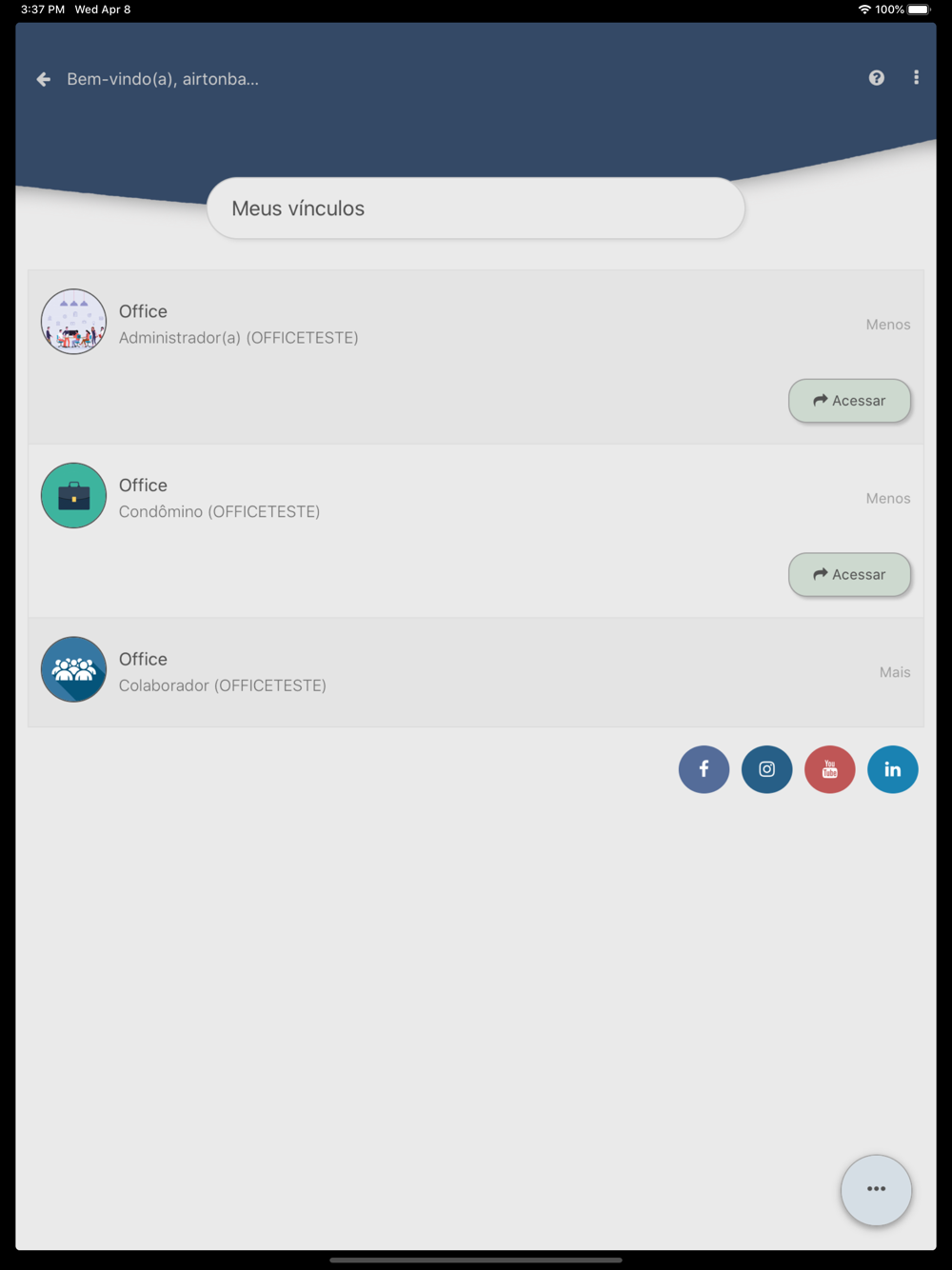 Vínculos exclusivos: Só o CondominiumOffice permite a você ter mais de uma função em seu Condomínio/Empresa, se necessário. Esta funcionalidade é ideal também para você que tem unidades em condomínios ou centros empresariais distintos ou mais de uma unidade no mesmo condomínio ou local;