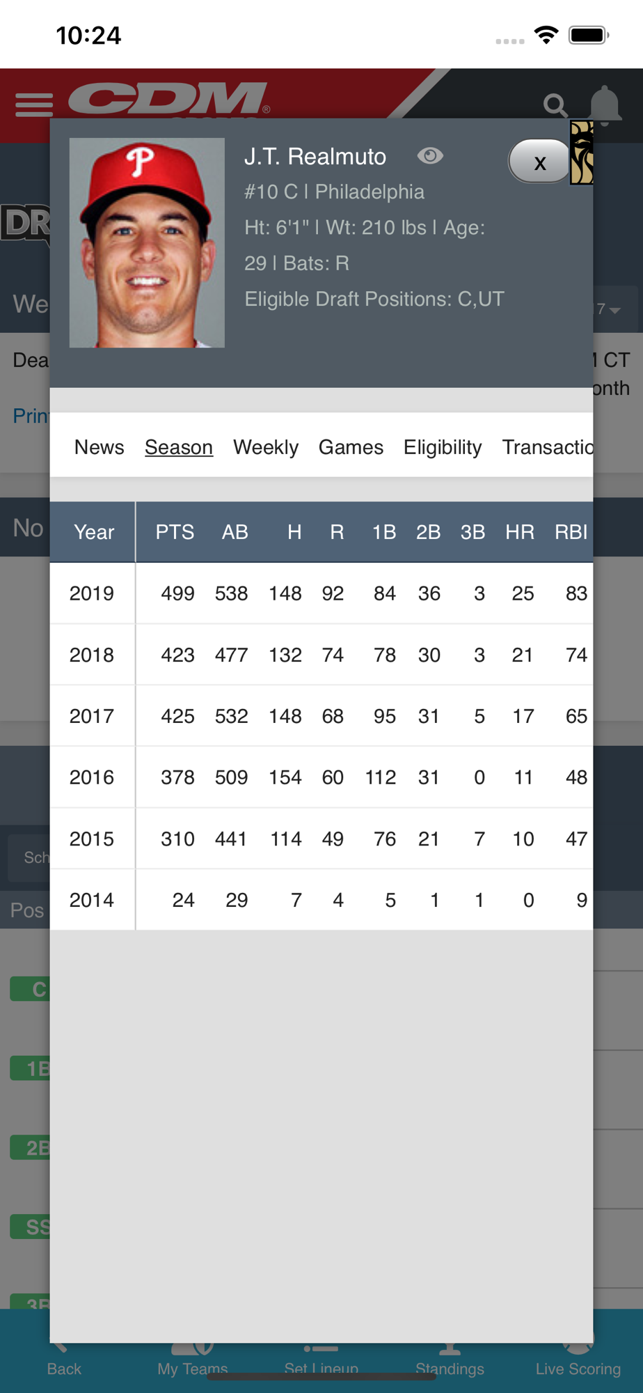 Using our state-of-the-art draft room, you can draft your teams easily and quickly without leaving your home. The in-season management tools also let you set your starting lineup, pick up the top free agents and see Live Scoring and Live Standings. You can even follow your live Draft Board on AirPlay so that you can see who everyone else is picking while you research your next pick. Signup for push notifications when your draft starts, when you are on deck or on the clock. Everything you need on Draft Day and after Draft Day to create a winning team is available here.