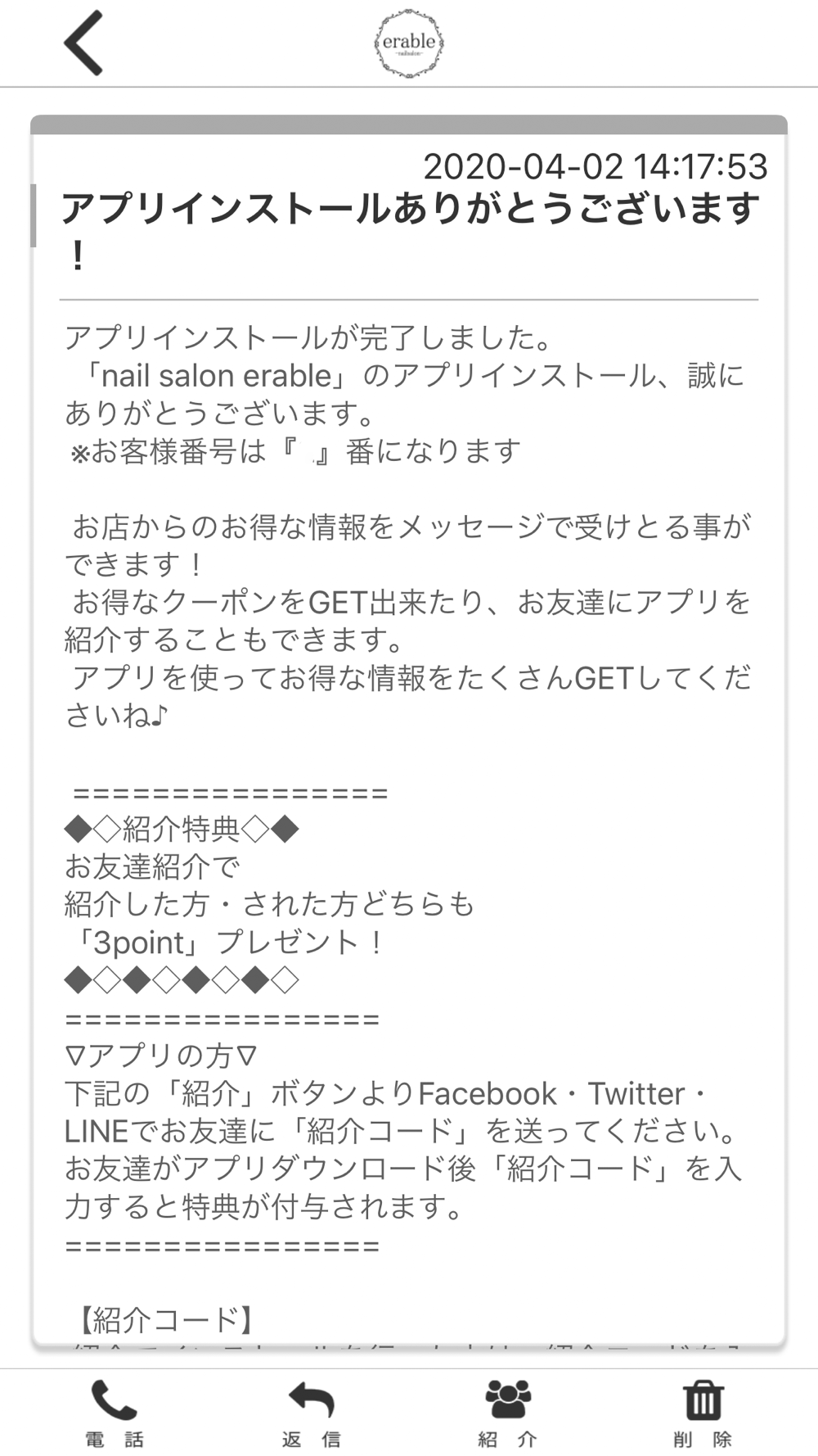 erableのアプリをSNSを通じてお友達に紹介する事ができます。