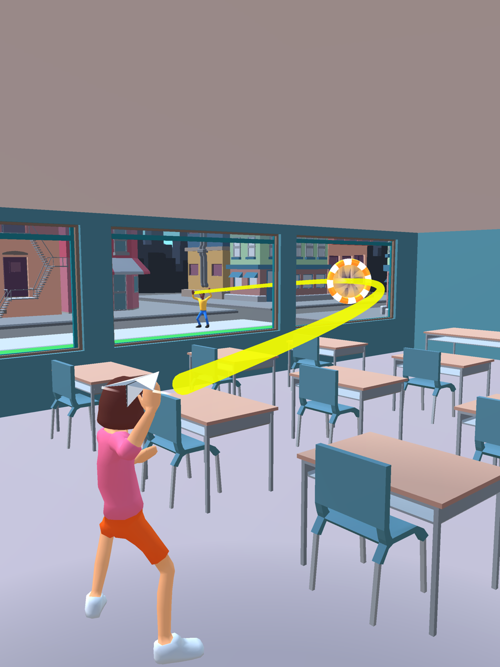 Test your paper plane throwing skills! Drag to aim and release to throw. Try to fly through every ring on your way and avoid hitting obstacles. Prove yourself as the Ace in the skies!