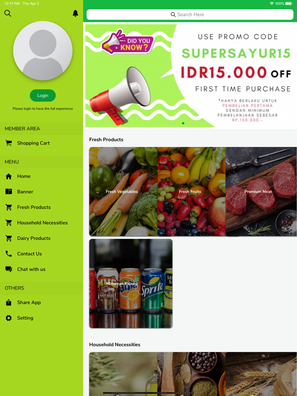 SUPER SAYUR adalah sebuah aplikasi belanja online yang dikembangkan untuk mempermudah khusunya warga Batam agar dapat membeli kebutuhan pasar sehari- hari tanpa harus meninjakkan kaki keluar rumah seperti ke pasar ataupun supermarket..