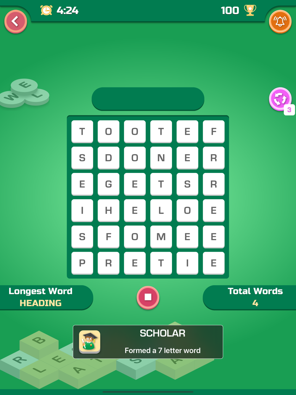 Welcome to Gridwordy - the game where words are jumbled in a grid. Find a word, form it, look for the next. When you form a word, then its letters disappear and the ones above drop down to replace them. Fresh letters enter to keep your grid full.