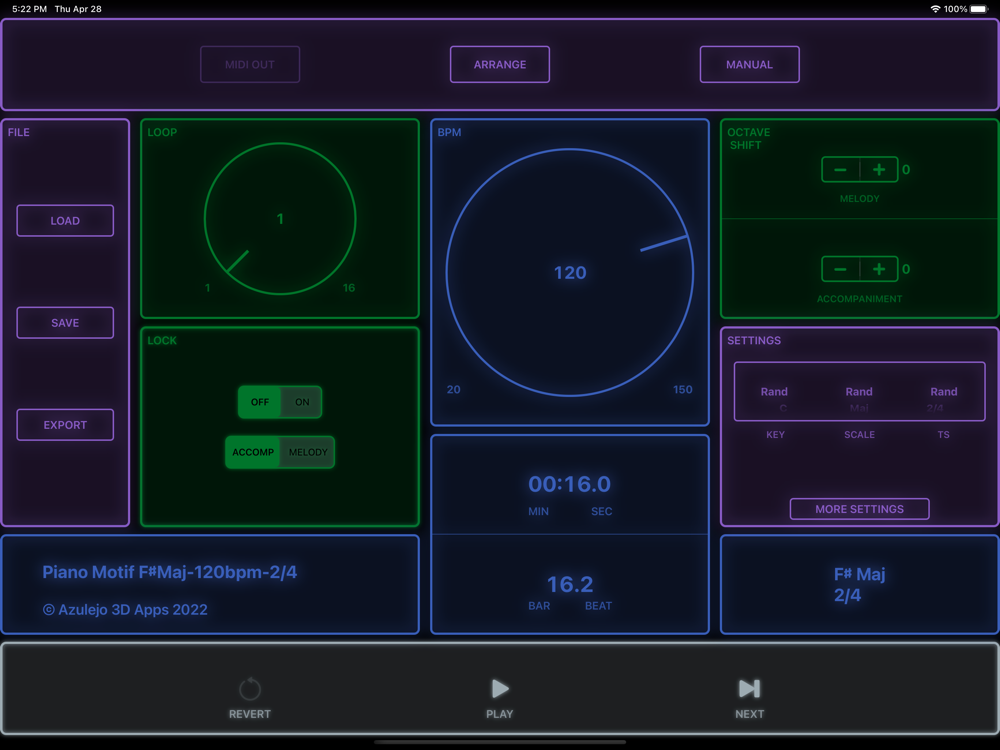 • Create original, catchy and inspiring MIDI loops at the touch of a button.