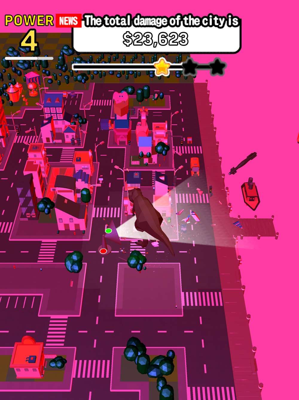 Play as a dinosaur and destroy the city! Destroy the cars, the houses, the skyscrapers - everything! The more you destroy, the bigger you grow! Gather your strength and destroy the main tower to complete the level. But beware of the drones, if they catch you - you lose!