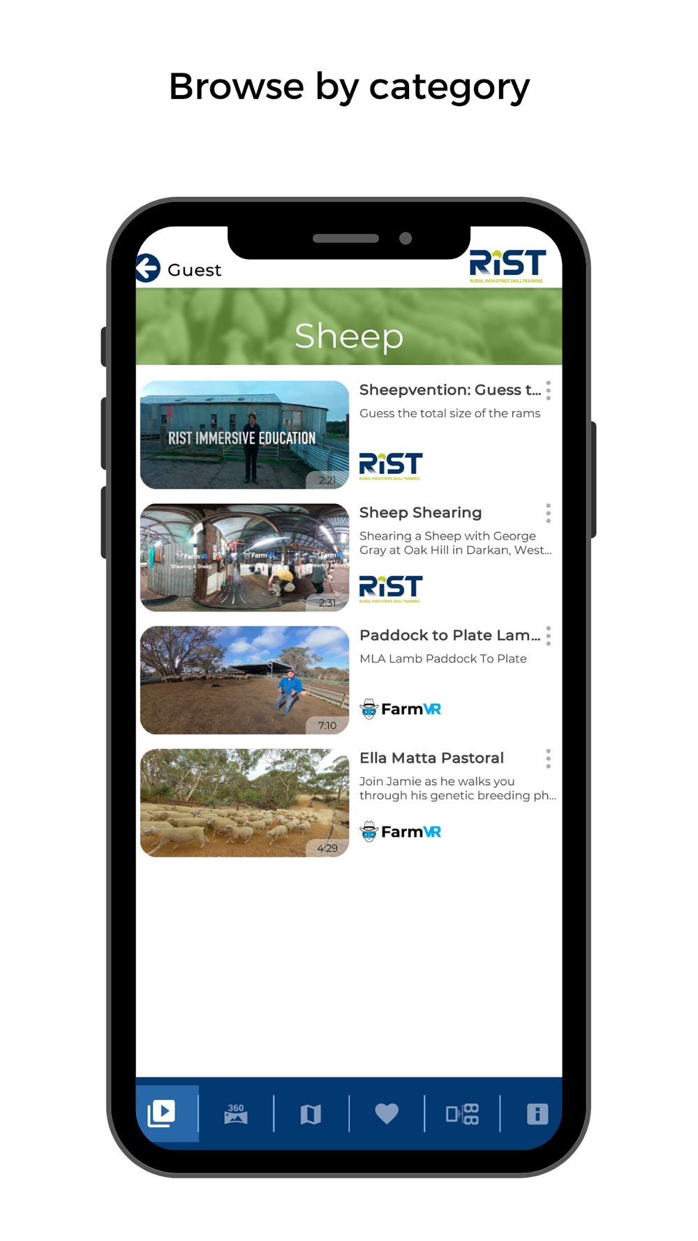 Put yourself in the farmer's shoes as you explore RIST's collection of 360° photos and videos from all over Australia! With categories such as Sheep, Pastures and more, there's something for everyone. Dive deep into a cell, visit a shearing shed in Western Australia, or learn about pasture management with our immersive content.