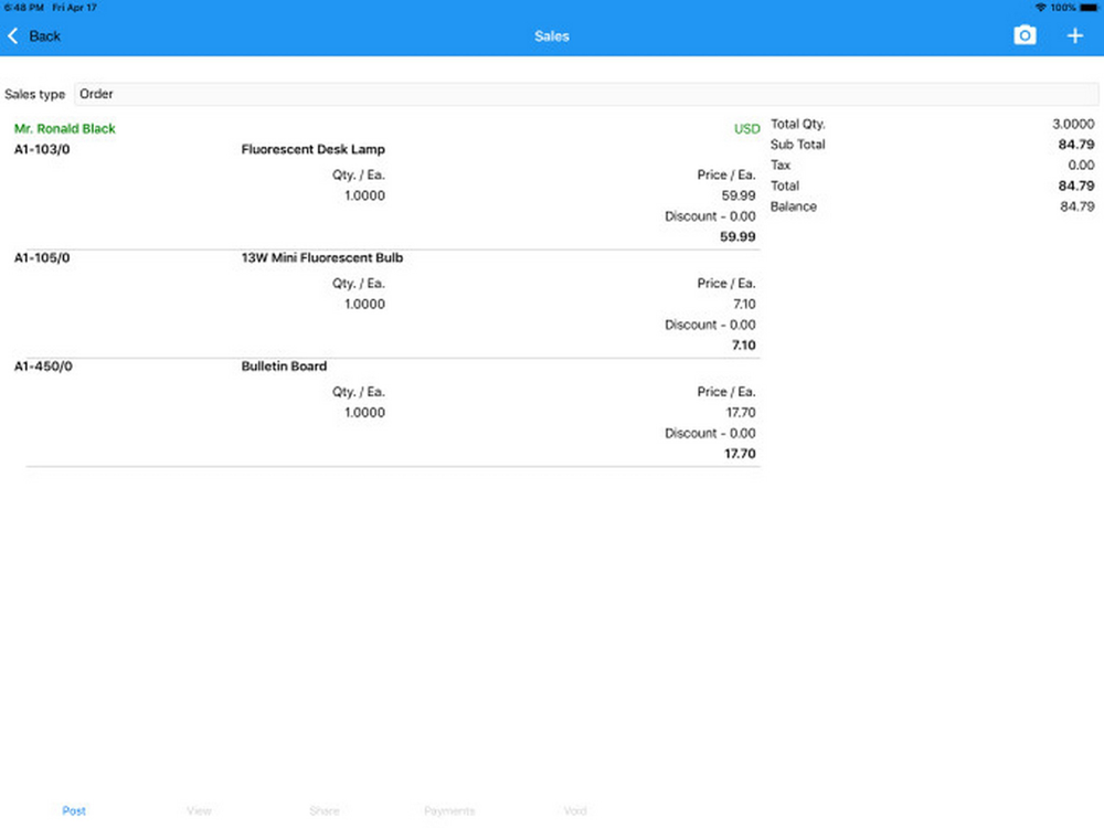 - Create sales orders and invoices remotely and post them to Sage 300 O/E right away