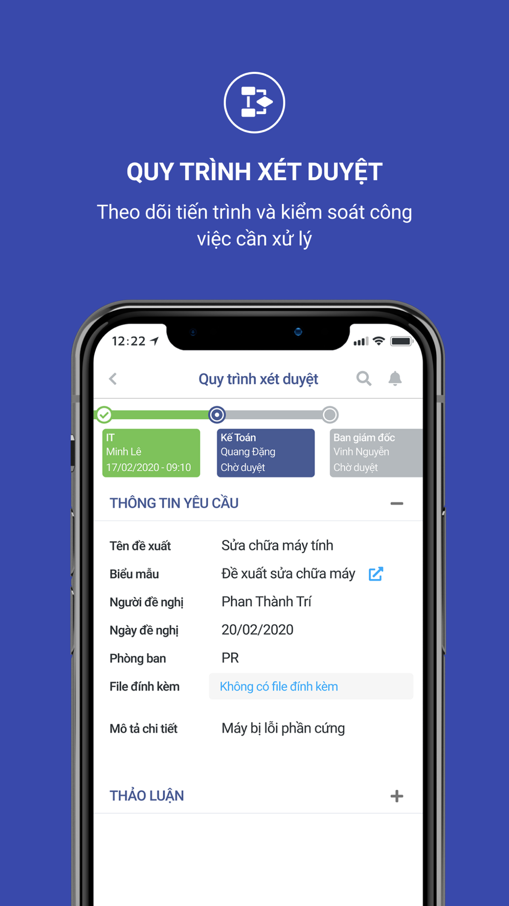 + Way Request: Ứng dụng xét duyệt yêu cầu đề xuất, hệ thống hoá quy trình làm việc đảm bảo đúng tiến độ và yêu cầu của luồng công việc