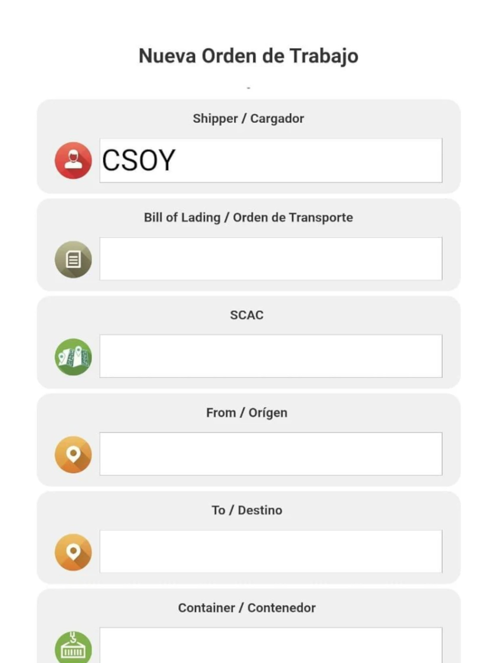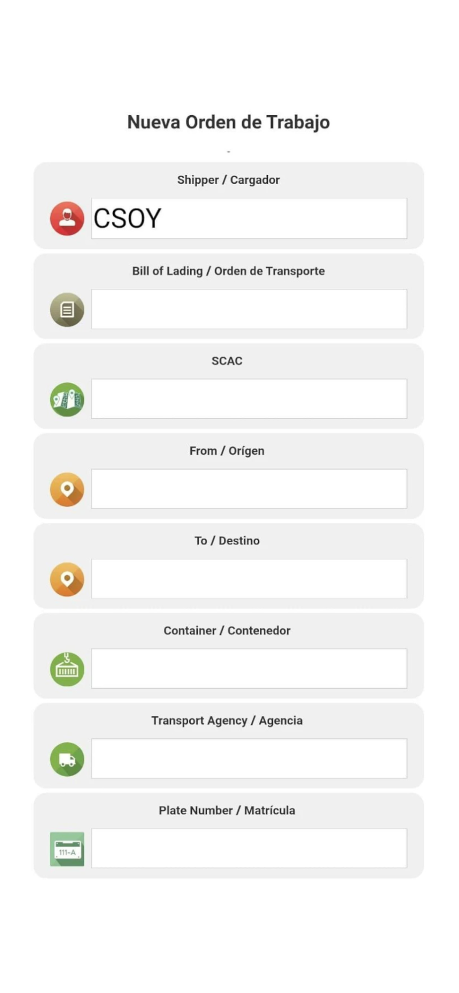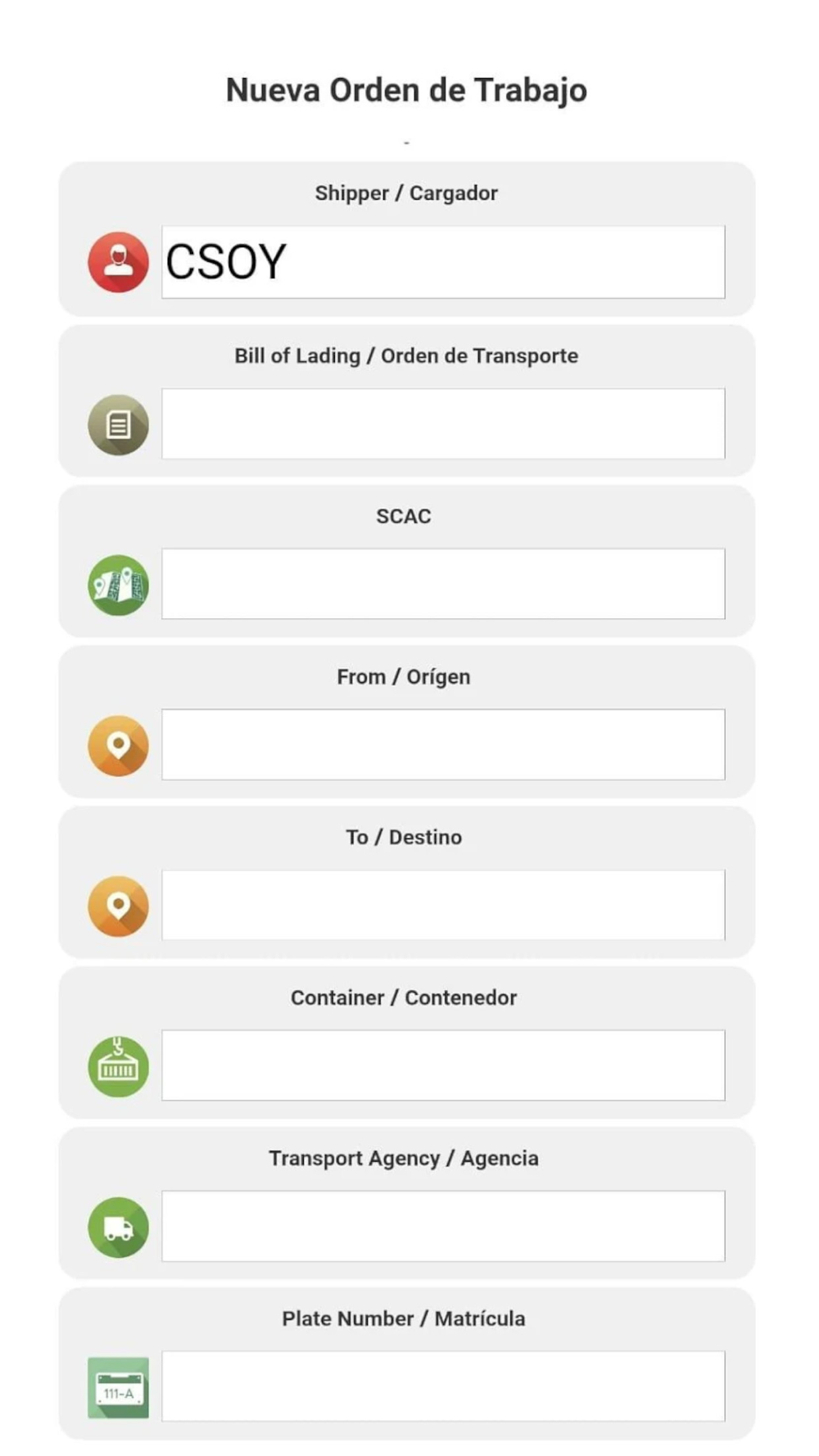 Cada perfil de la cadena logística podrá registrar la información del contenedor y la matrícula del vehículo o del barco en el que viaja la mercancía.