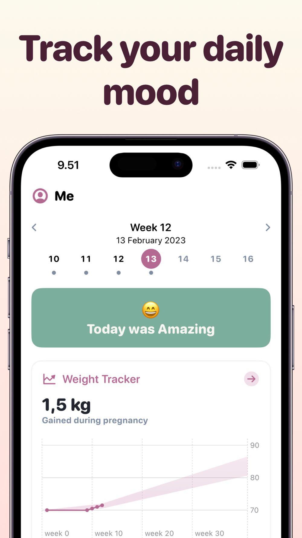 Pregnancy tracker by Bornly provides a wealth of features to help you monitor your health and your baby's development. From the pregnancy tracker, which enables you to keep track of both your health and your baby's progress, to the daily mood logger, which helps you monitor your emotional well-being, we offer all the tools you need to have a healthy and positive pregnancy experience.