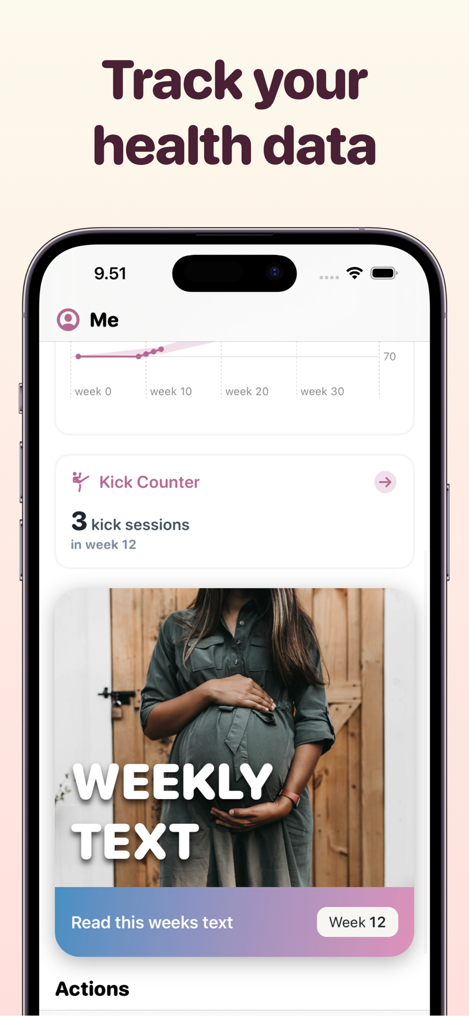 Our app also features a pregnancy weight tracker, which lets you monitor your weight gain throughout your pregnancy and ensure that you're staying within a healthy range. With the kick counter, you can track your baby's movements and activity levels, helping you monitor their health and development. And with the contractions timer, you can time your contractions easily and accurately, which can help you determine when you're in labor and when to go to the hospital.