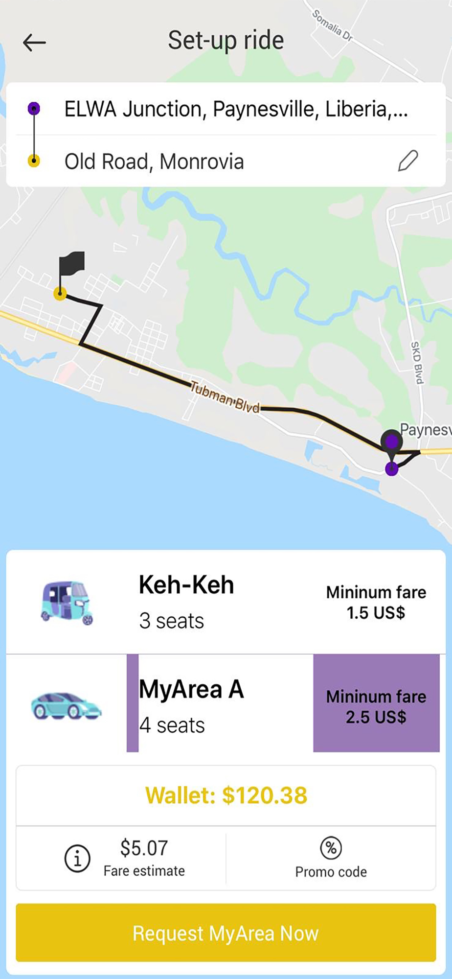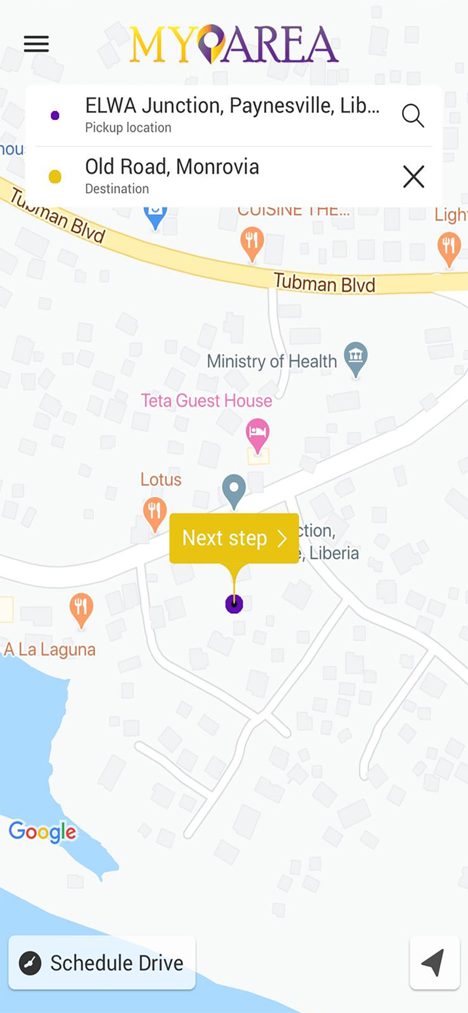 MyArea - Order a ride now or schedule one in advance through Liberia’s newest ride-sharing app.