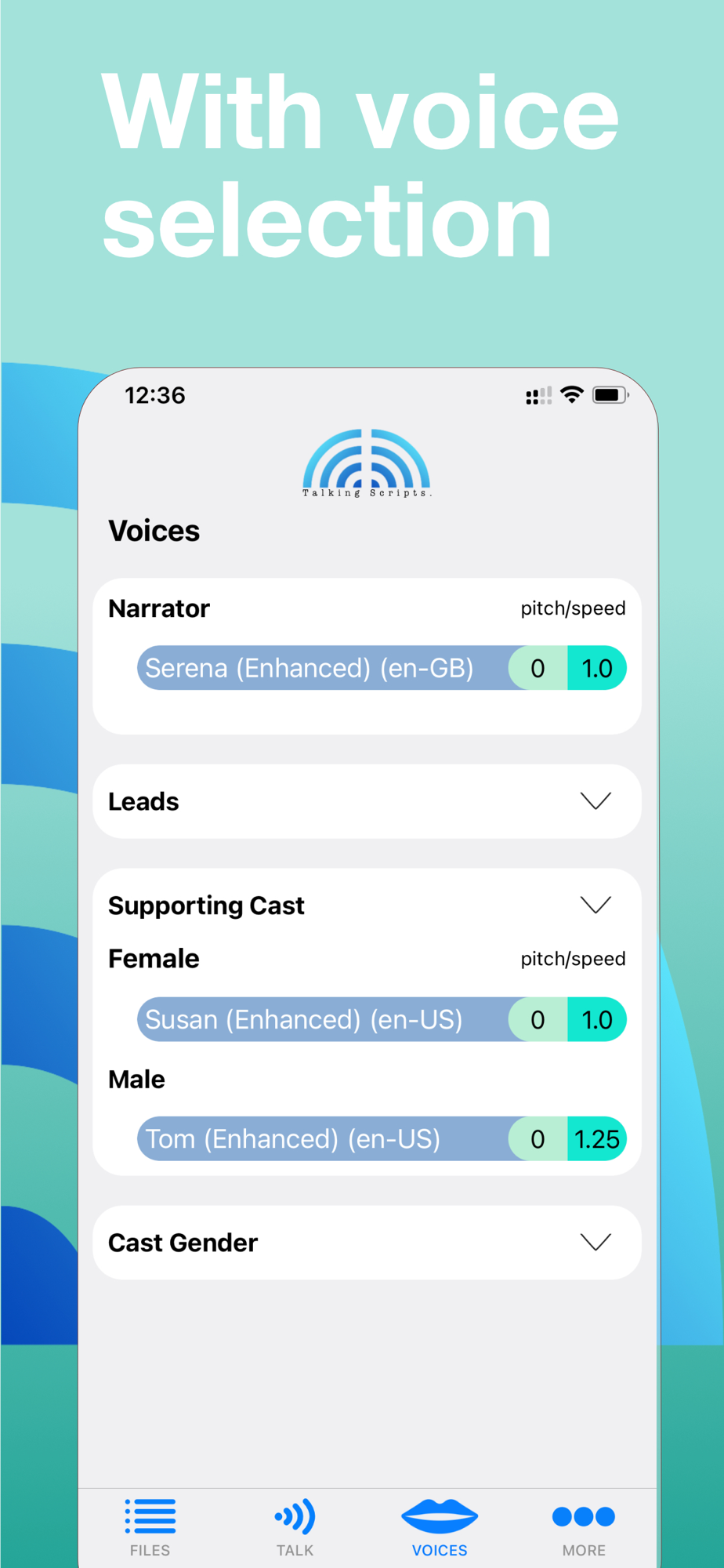 With advances in Apple’s text-to-speech technology, we found a way to create an app which ‘reads’ a script to you, one that knows male from female characters, allowing you to have different voices for men and woman and your leads. An app that doesn’t get bogged down in reading headers, footers, page number, etc.