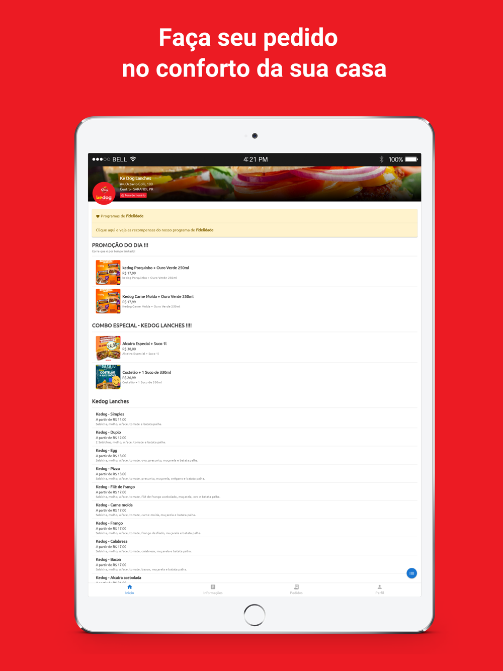 - Acesse todas as informações de nosso cardápio.