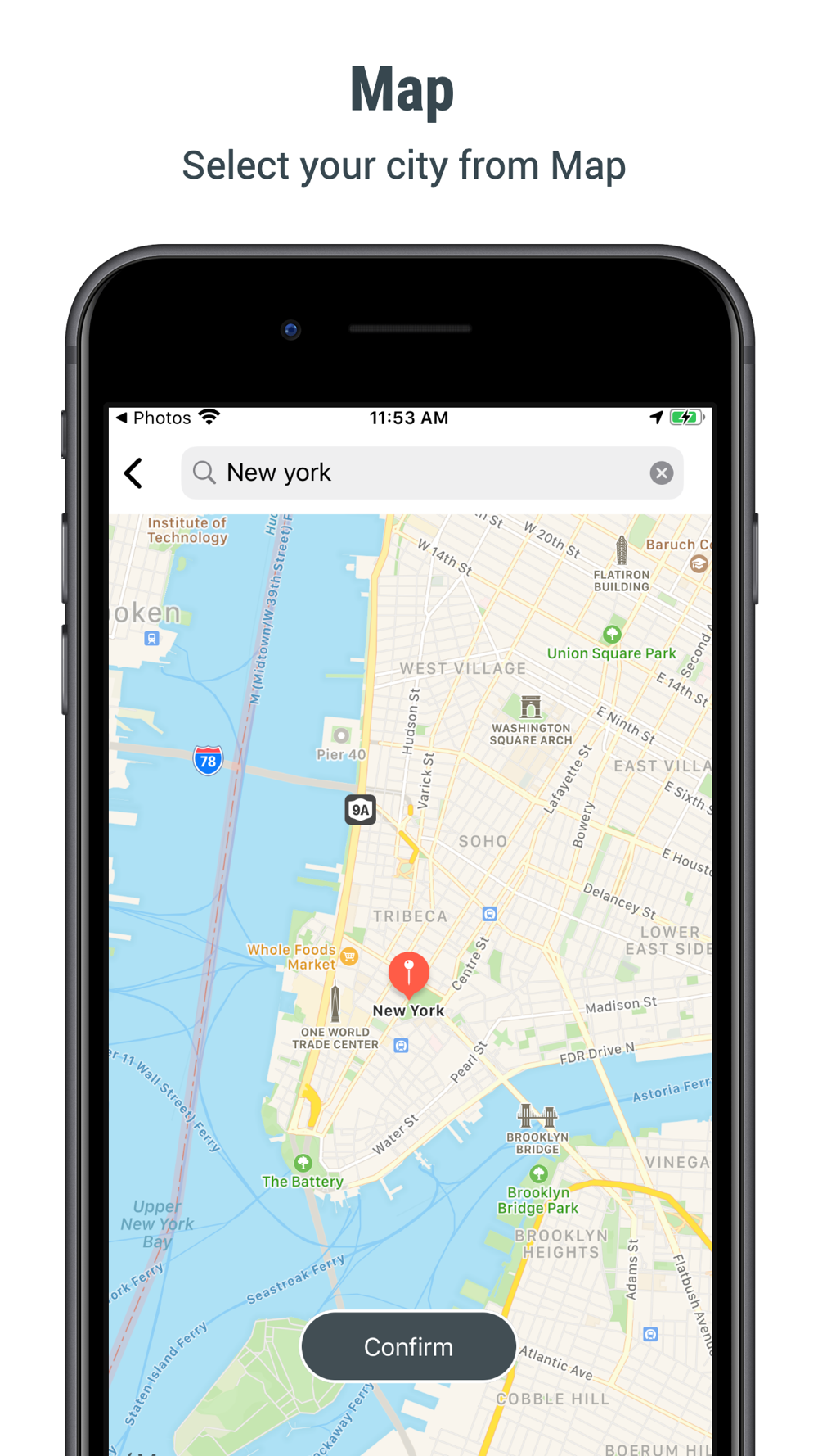 Take or import a photo from your iPhone, Choose your City from Map. It´s easy, fast and there’s a whole bunch of possibilities!