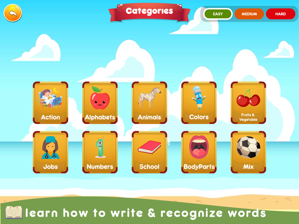 ii) Spelling Puzzle Mode : create a word correctly using picture or sound in each mode.