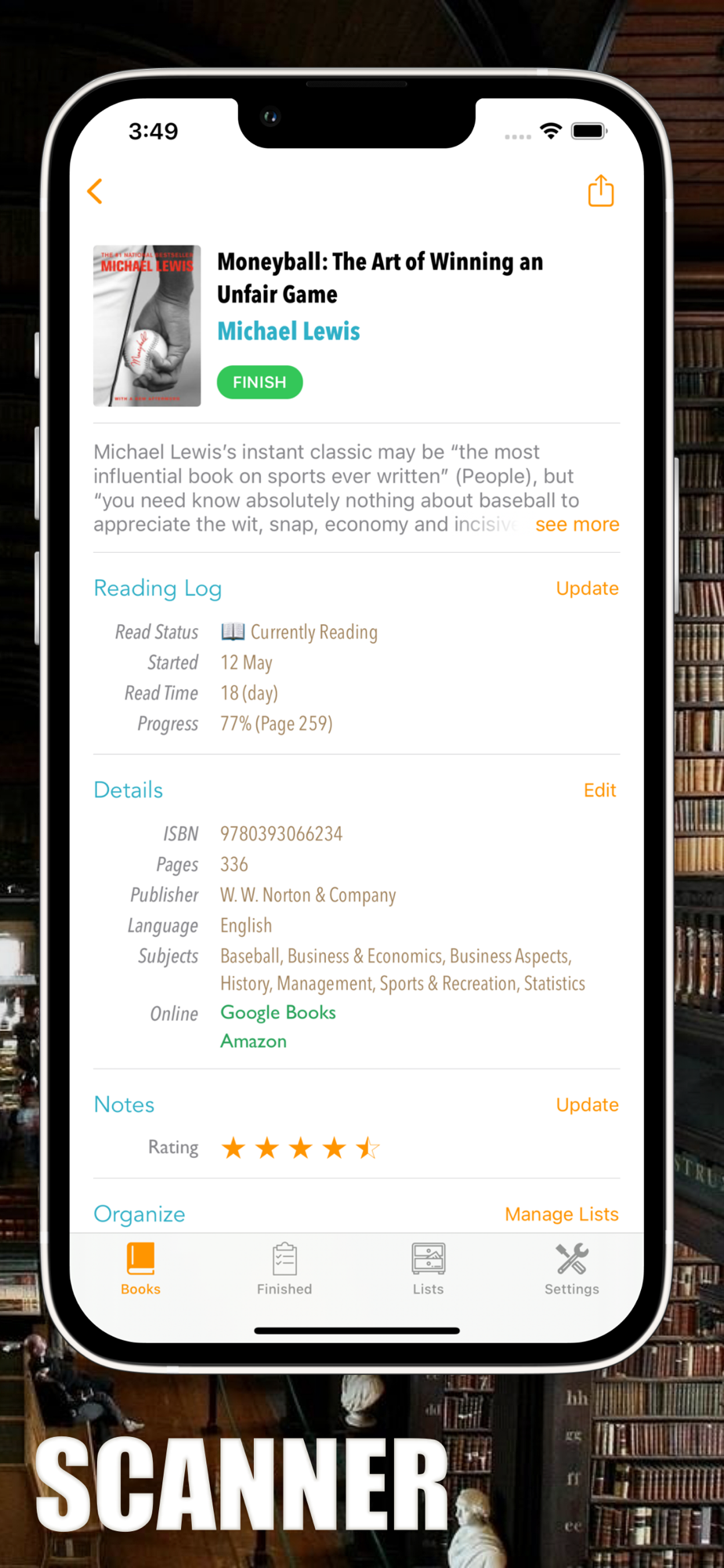 * Add books to your library by scanning their barcode.