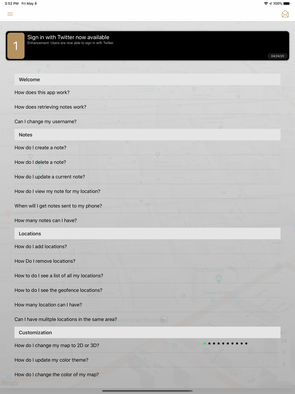 *Notifications sent when close to or inside locations.
