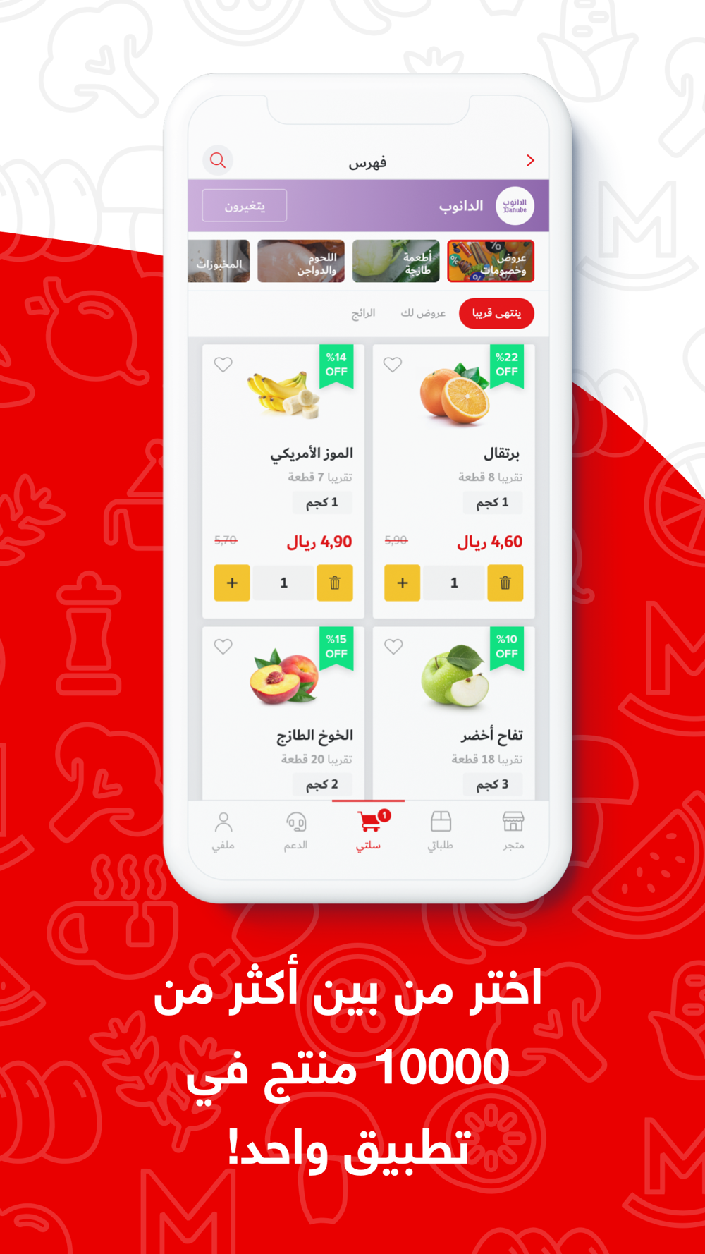 تسوق من أكثر 10,000 منتج و صنف من المتاجر والسوبر ماركت المفضلة لديك مثل الدانوب ، أسواق العثيم ، لولو ، ميد ، بنده ، أسواق الجزيرة والمزيد!