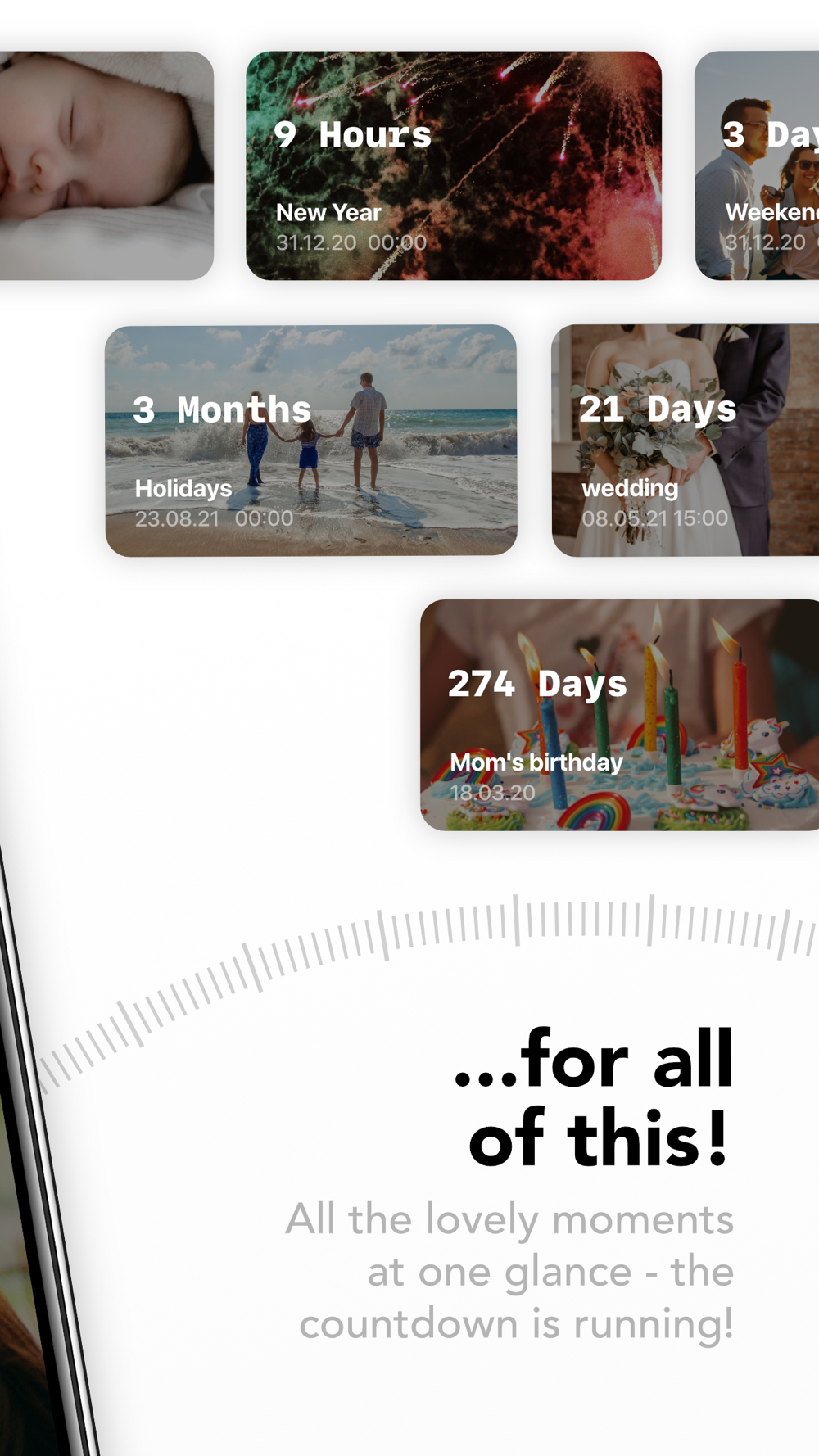 It's the small things in life that make it awesome. Got a date next week, holidays or christmas coming up soon? »321 Countdown« shows you just how much time is left until your exciting moments are bound to happen. So what are you waiting for?