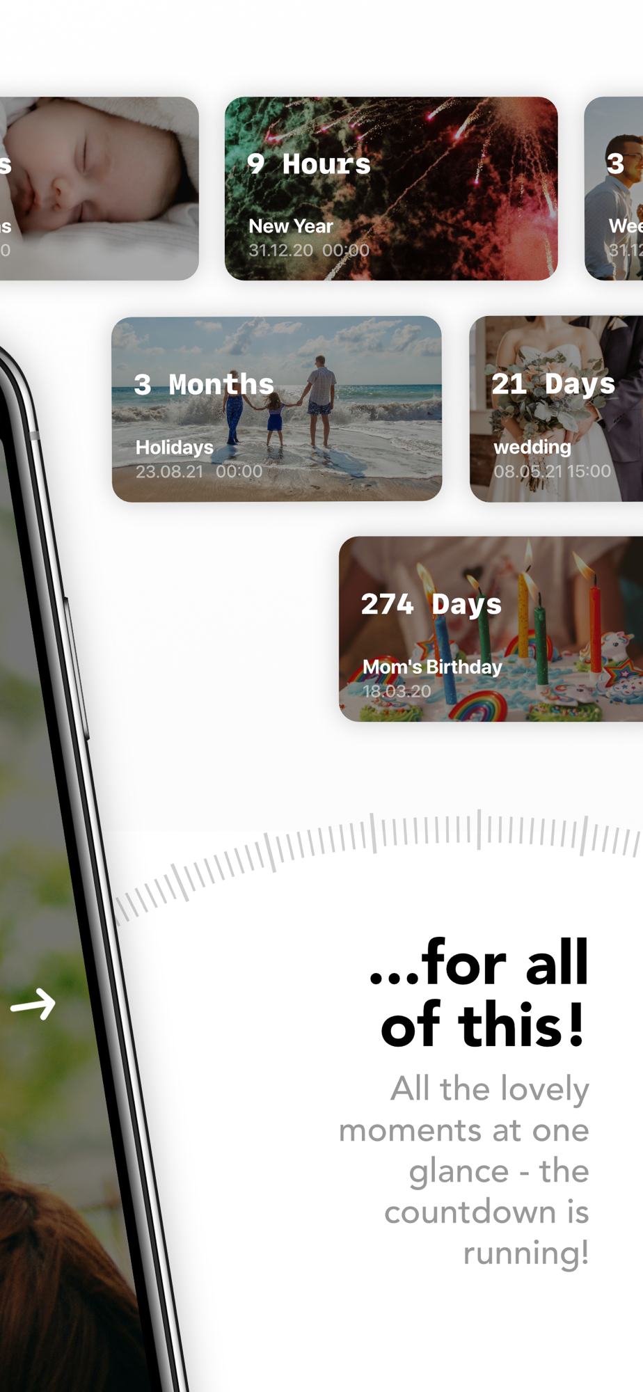 Oopsies! You almost forgot your aunt Lizzie's birthday! Count yourself lucky because with »321 Countdown« your upcoming events are organized and precisely calculated in the most unique units imaginable.