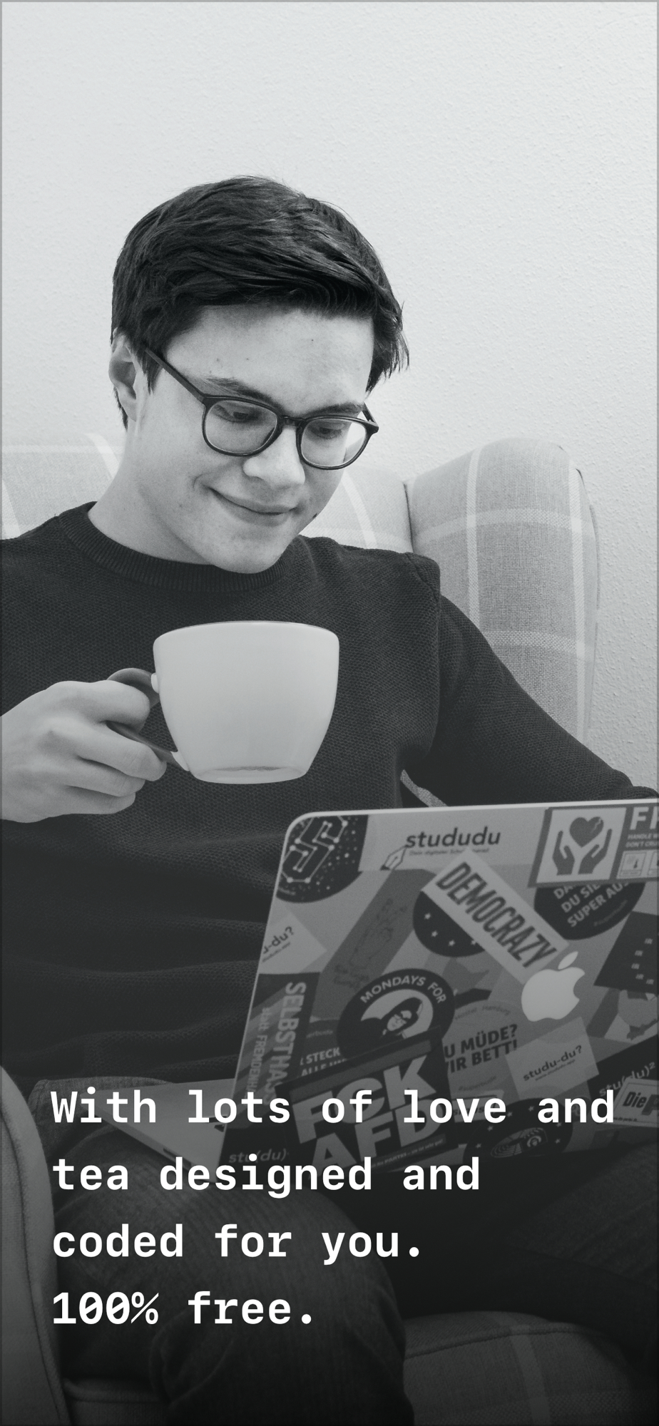 And saving the best for last: No annoying ads. No chargeable add-ons. 100% honest, 100% free of charge. Just like that. For you!