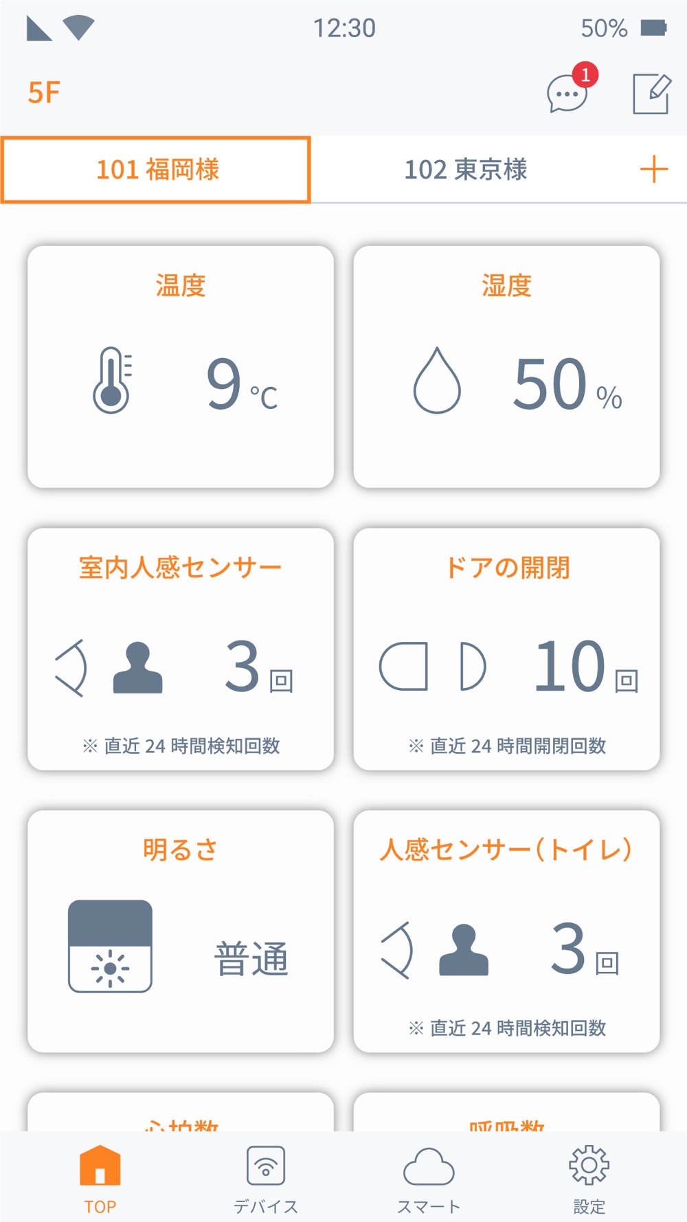 心拍、呼吸、離床、温度、湿度、トイレ回数、体温、ドア開閉などの通知機能や、閲覧機能、また、ウェブの画面での表示も可能で