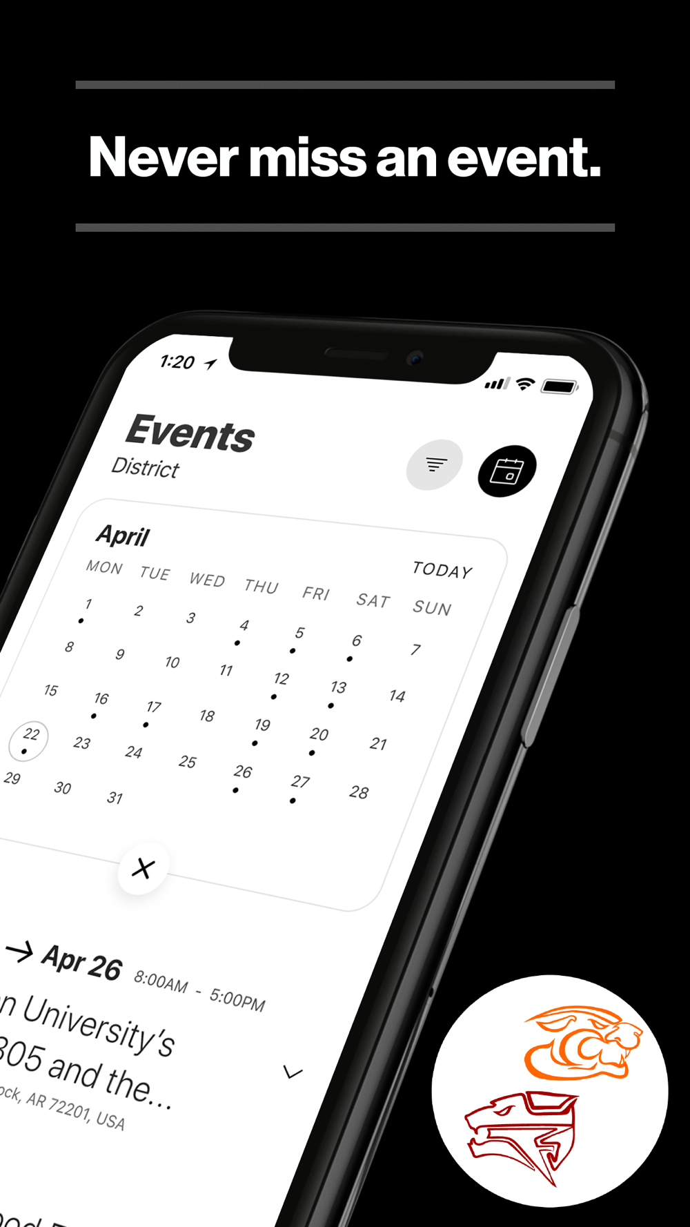 NEVER MISS AN EVENT