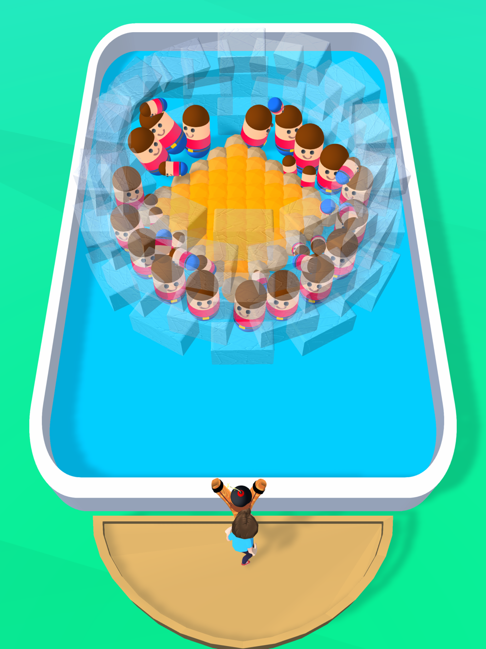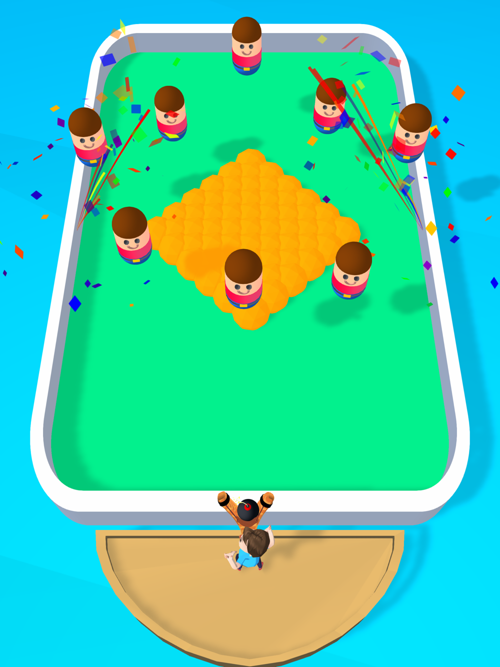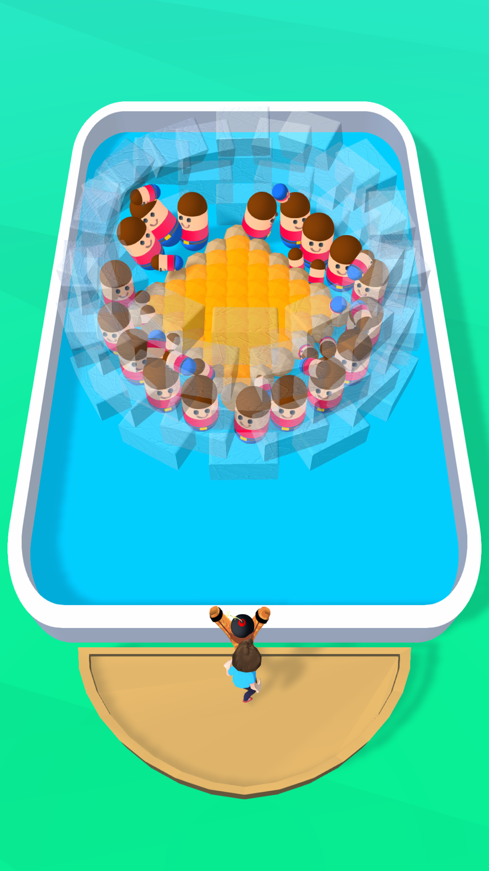 Drag your finger to aim, release to fling bombs at the beans.