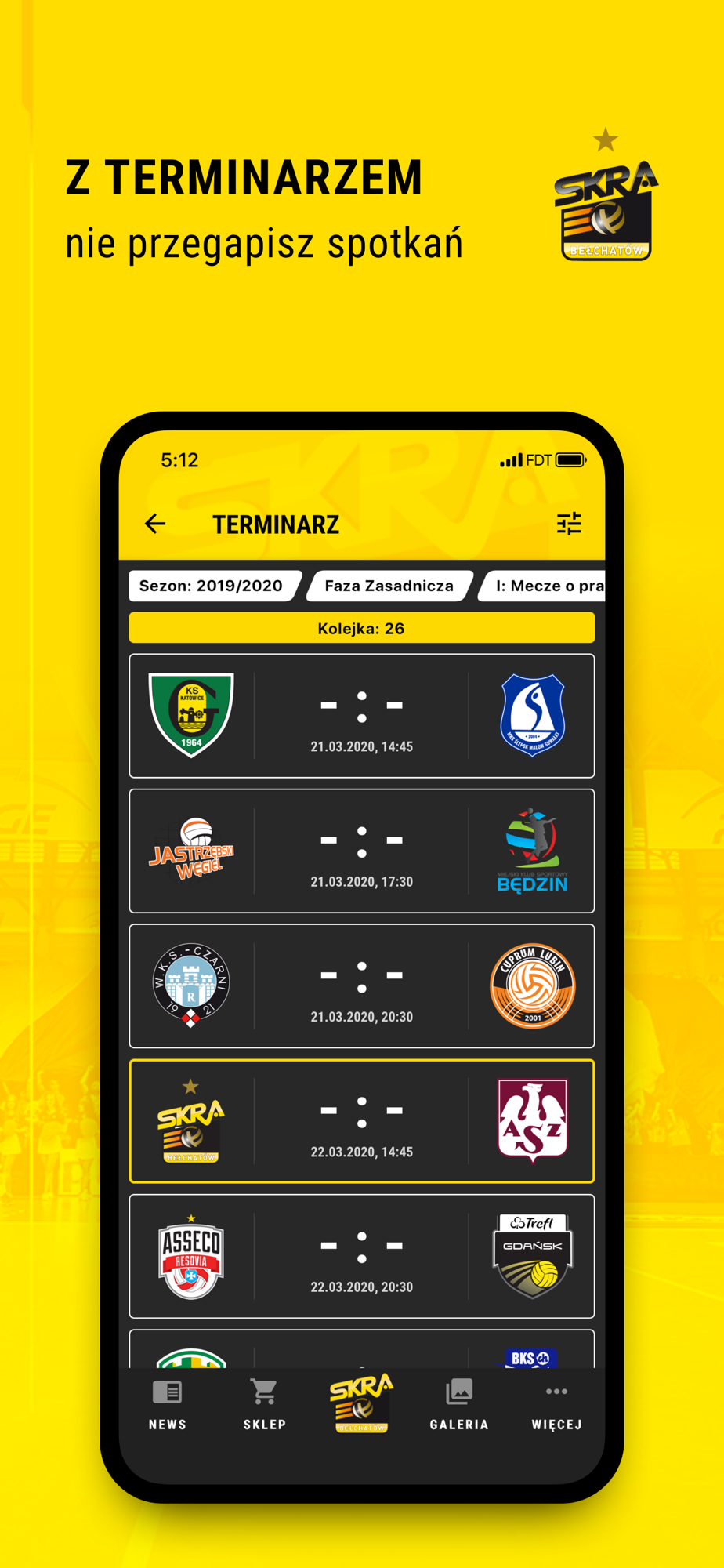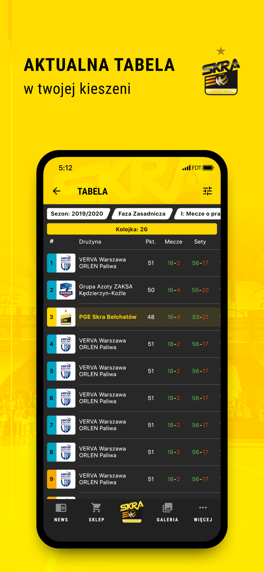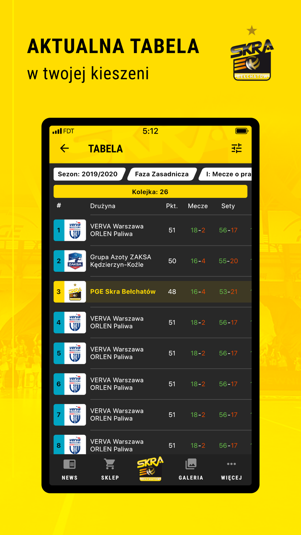 Z nową aplikacją PGE Skry Bełchatów z dowolnego miejsca na świecie będziesz mógł śledzić na bieżąco to, co dzieje się w naszym klubie! Wyniki na żywo, opisy meczów, sylwetki siatkarzy, prezentacja sponsorów, a także galerie zdjęć i najnowsze filmy ze SKRA.TV - teraz wszystko o swoim ukochanym klubie znajdziesz w jednym miejscu!