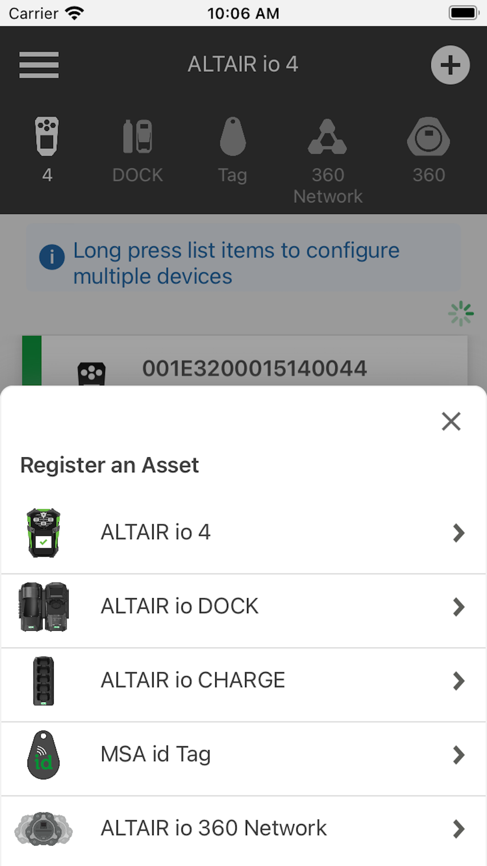 ALTAIR io 4 Precision Configuration: Update specific ALTAIR io 4 devices in your fleet by simply tapping your mobile device to the back of the ALTAIR io 4.