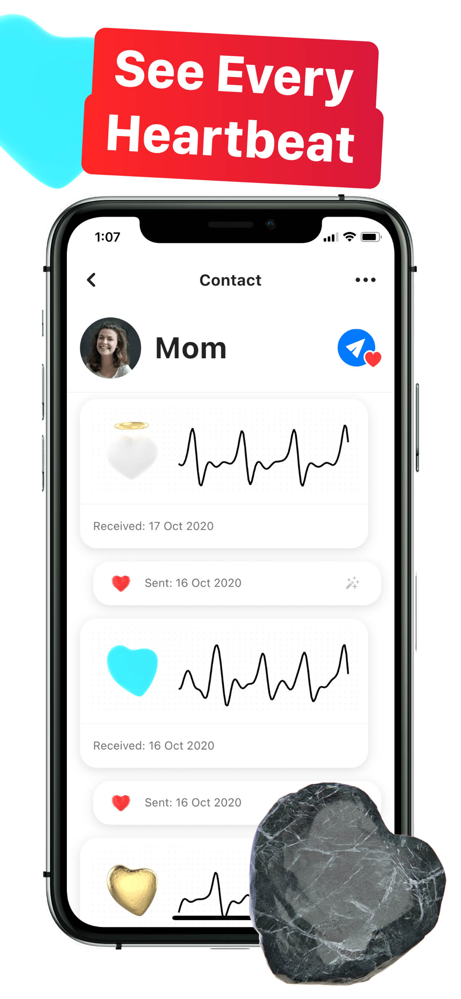– Choose a contact or a saved profile of loved one or pet to upload their heartbeat to HB Ring