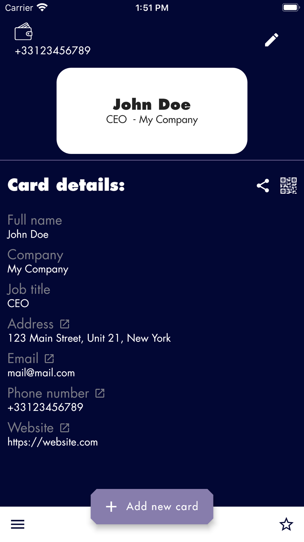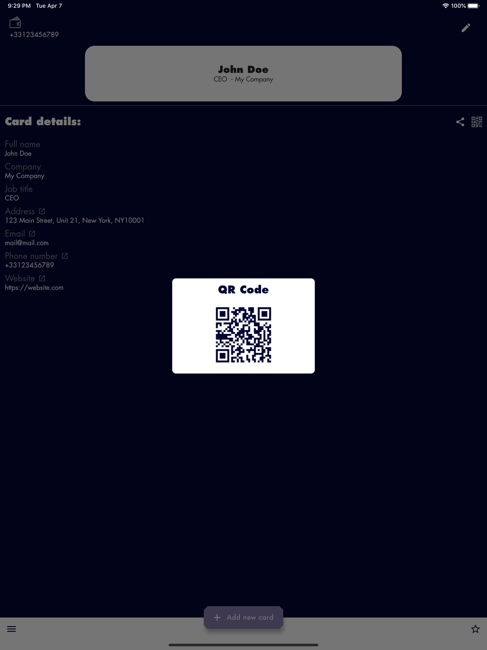 BusyCard will allow you to create your own business cards quickly, share them via a link or a QR Code.