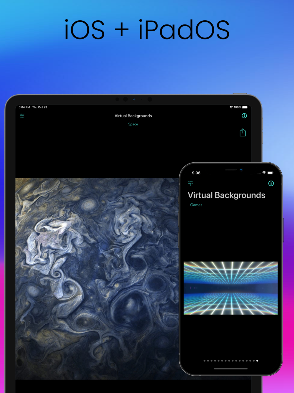 Virtual Backgrounds supports iPad and iPhone (2015 and newer). For the best experience, iPhone 8 or newer is recommended.