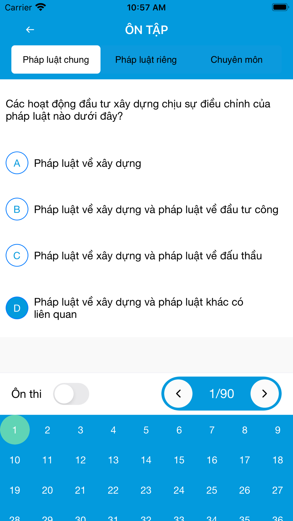 Ứng dụng được thiết kế và tối ưu hóa giao diện, nhiều tính năng giúp bạn ôn tập và thi thử chứng chỉ xây dựng cho đầy đủ các lĩnh vực sau: