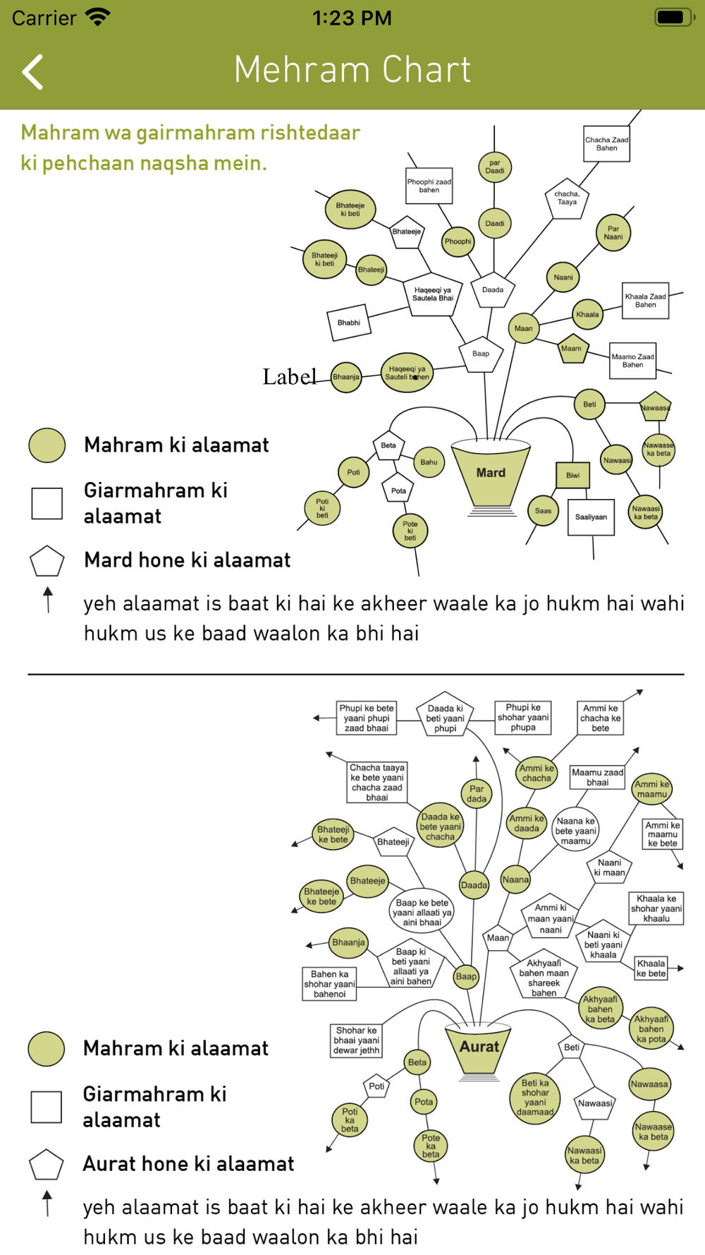One more important feature of the app is Mehram naqsha which details about who all are mehram or stranger to individual as per Islam