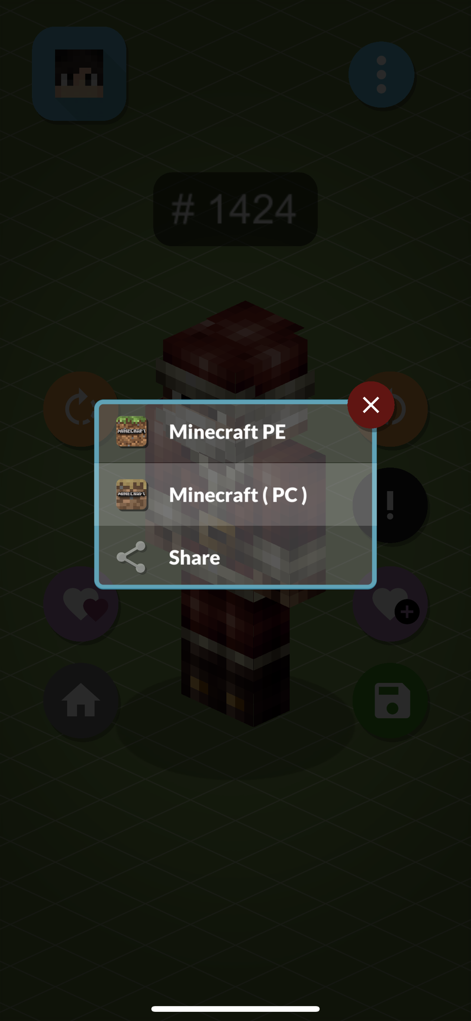 All Minecraft skins are shown in 3D. You can rotate them in 360 degrees. With just one tap you can export it to MCPE, Minecraft PC, Gallery, or share with your friends.