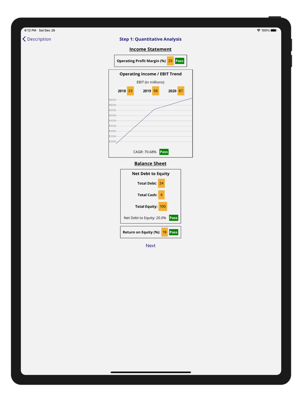 Thirdly, you need to check the fundamentals of the company. Meaning, you need to check it's operating income, otherwise known as earnings before interest and taxes, for the past 3 years. Using these values, the calculator will automatically show the company's EBIT compounded annual growth rate and it's other ratios. These will ensure that you have picked a growth company.