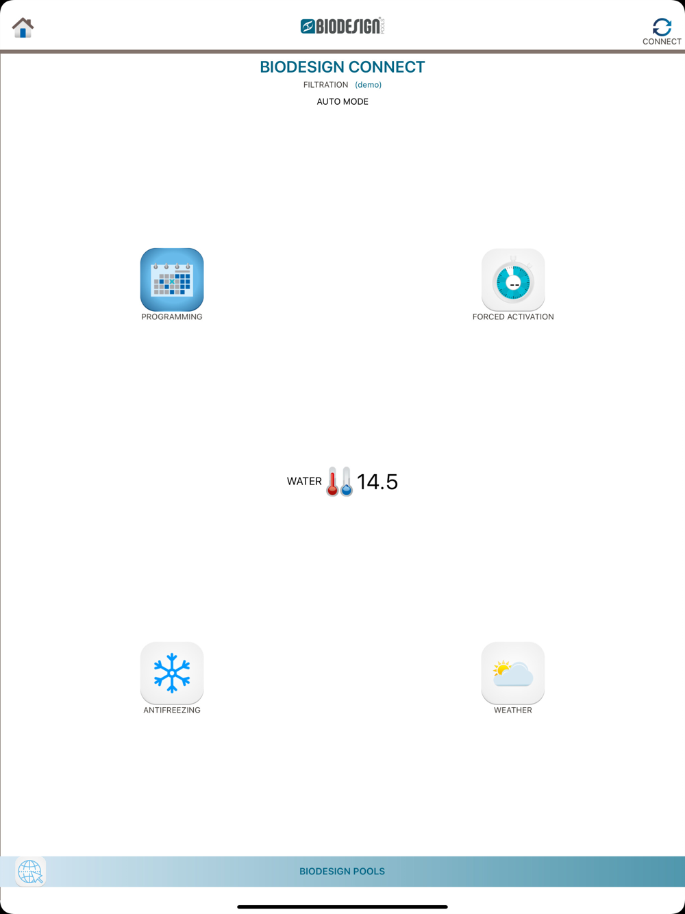 APP for the control of the equipment for the management of a Biodesign swimming pool