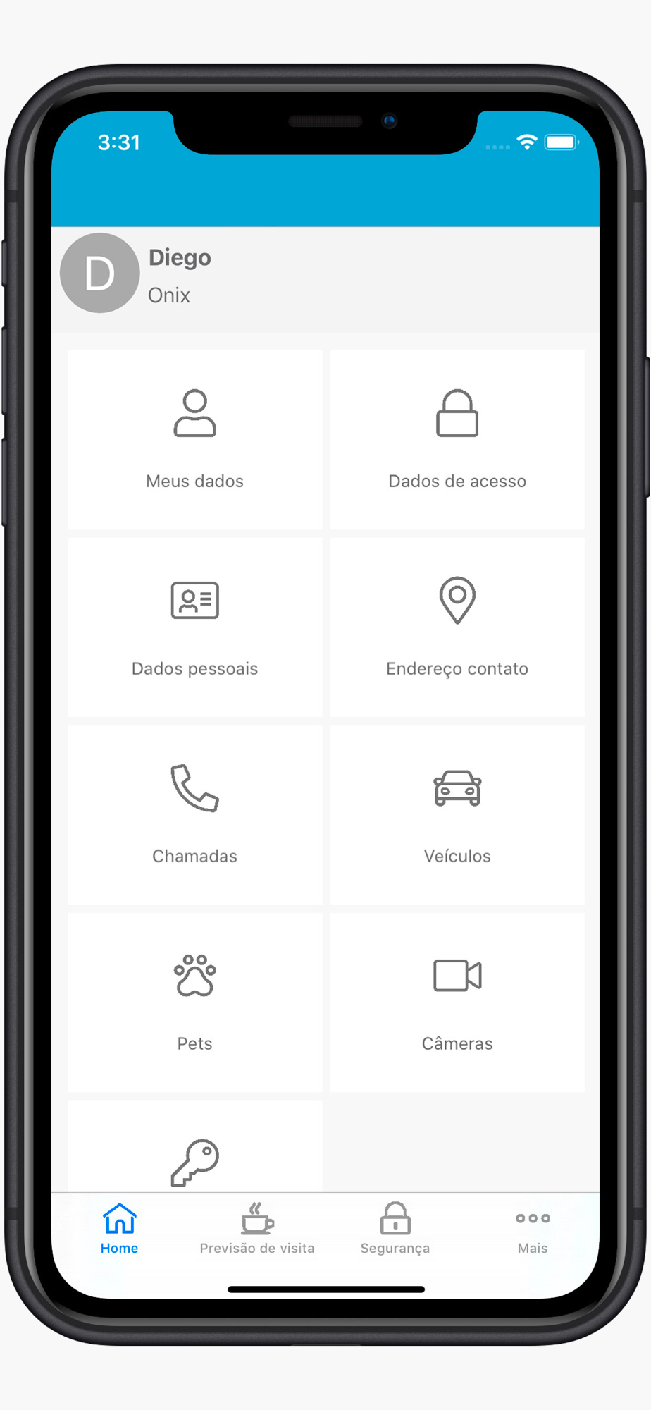 Possibilidade de convidar os amigos, visualizar as câmeras, abrir as portas e ser notificado quando seus amigos chegarem no Condomínio.