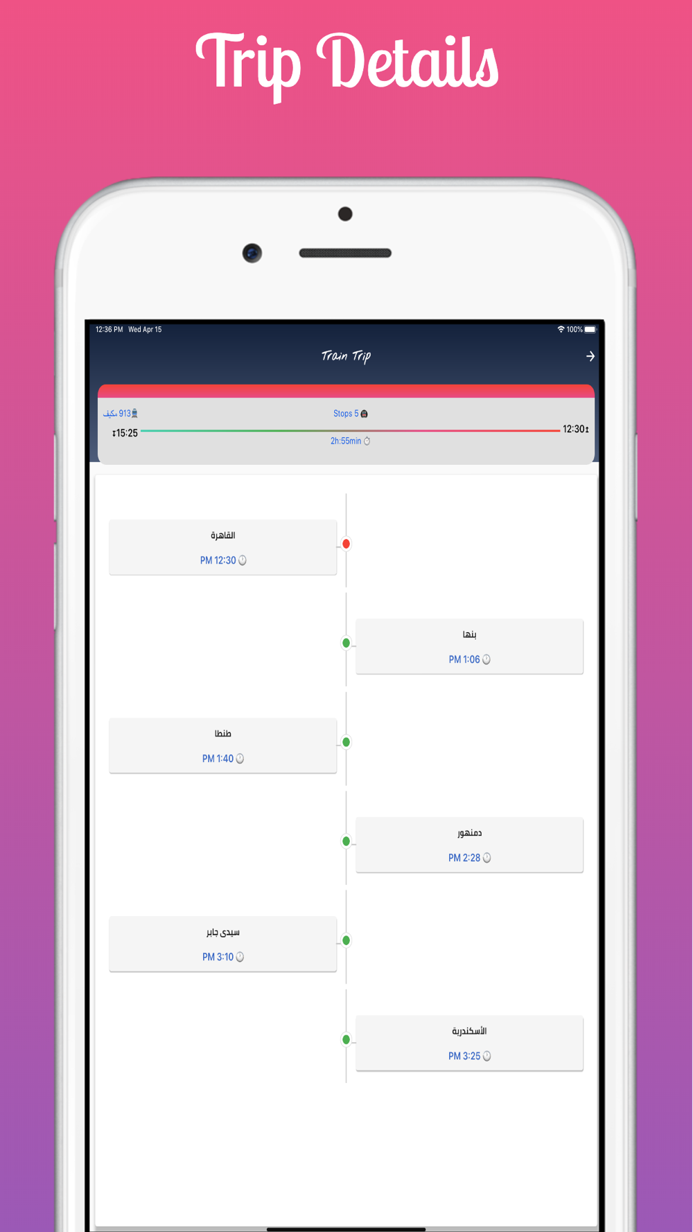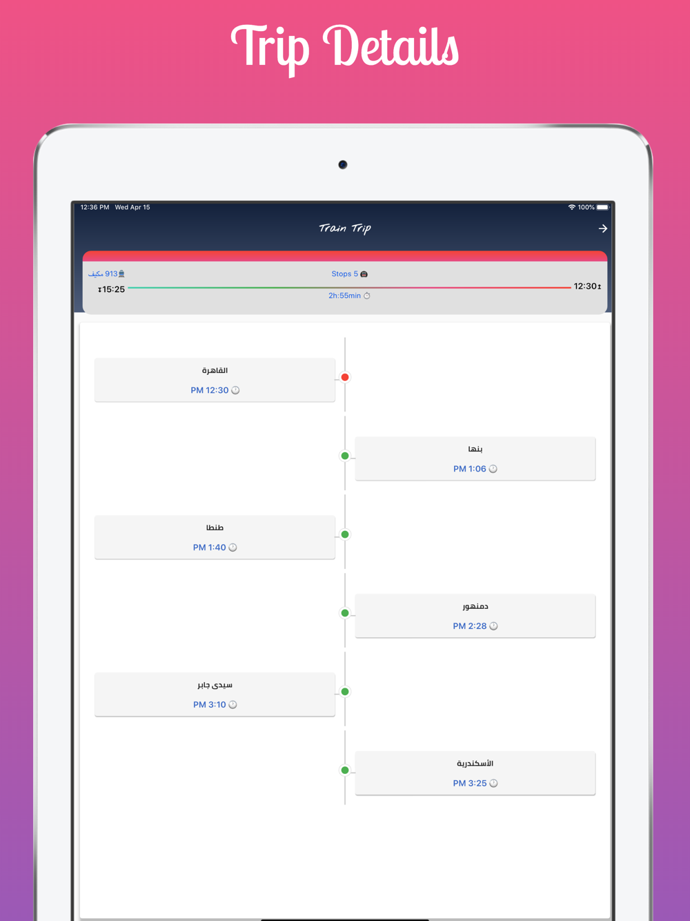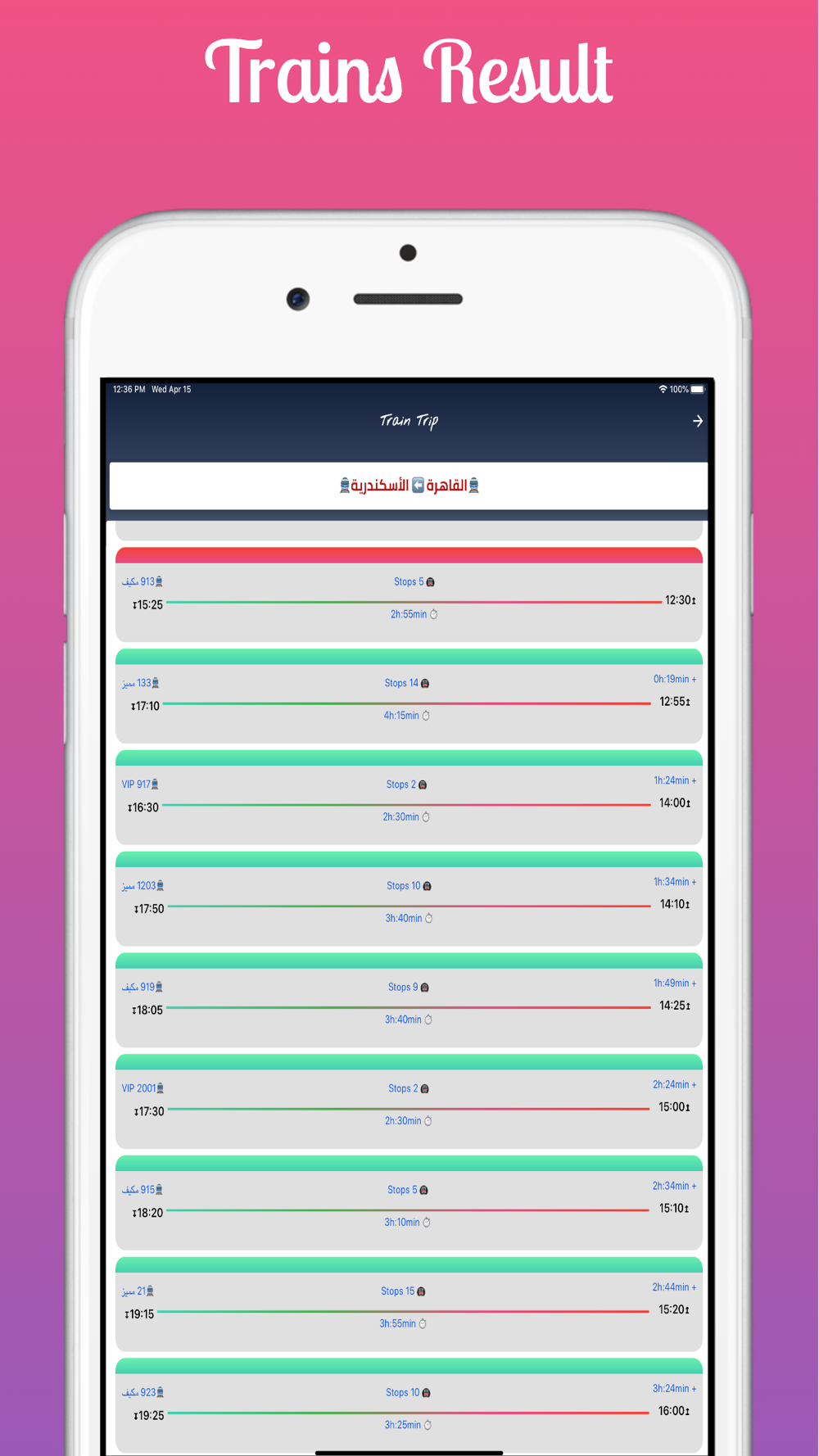 تطبيق يتيح البحث عن مواعيد القطارات بين أي محطتي قطار من أكثر من 500 محطة في مصر.