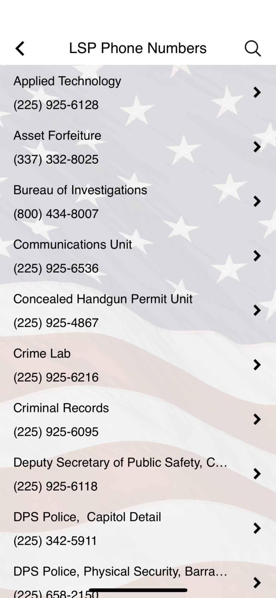 This app is for the employees of the Louisiana State Police and the state it serves. It contains information about our department as well as safety and crime prevention tips.