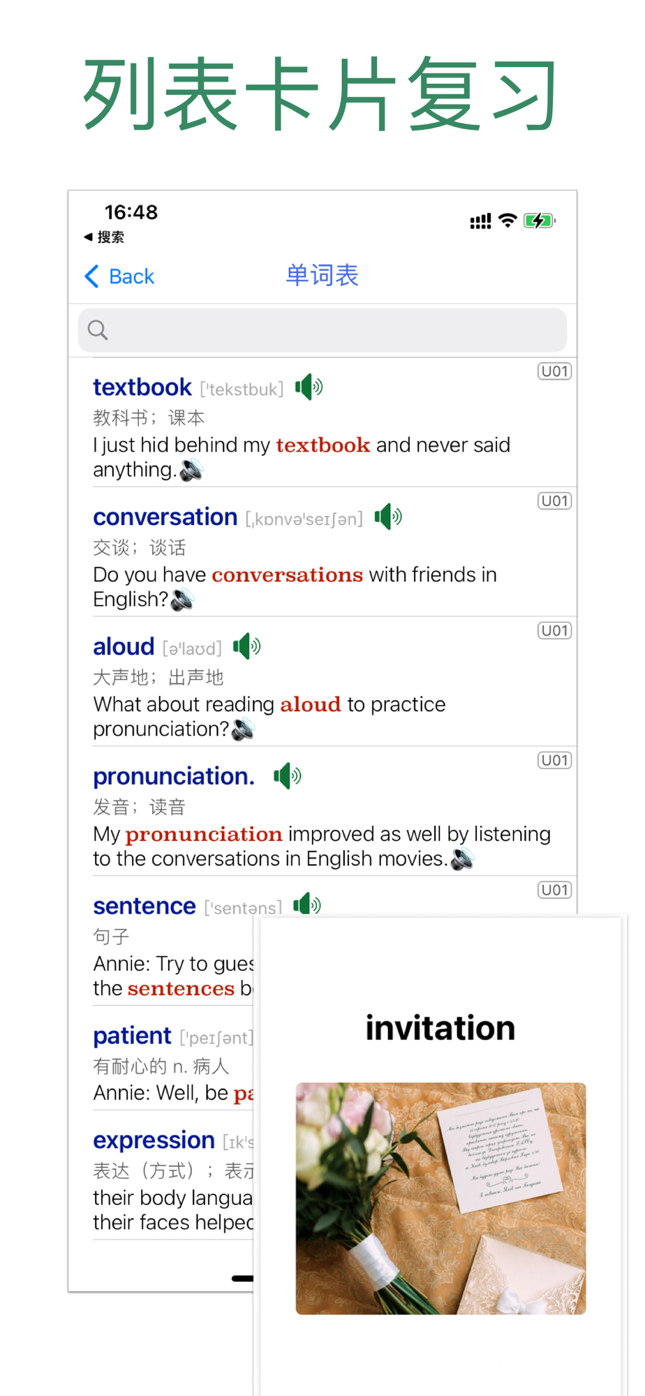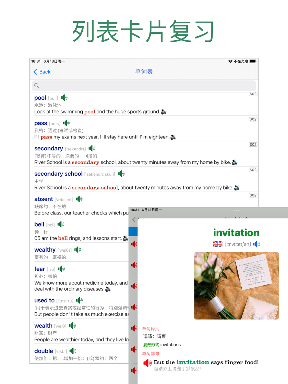 本次更新:1. 为课文听读增加播放模式,次数,倍速,信息切换2. 为跟读增加中文隐藏 3. 增加听写列表单词和汉译的大字体显示,便于投屏4. 优化单词学习UI5. 修改反馈的问题最近更新:1. 增加艾宾浩斯记忆曲线法背单词2. 增加单词用法注解3. 增加自由组合听写单词的功能邮箱: