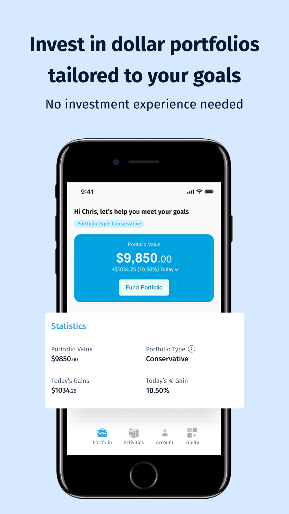 Invest in dollar portfolios tailored to your risk profile and managed by experts. SmartInvest helps you save time, build a better saving habit, automate your investments, and meet your investment goals easily. No investment experience required.