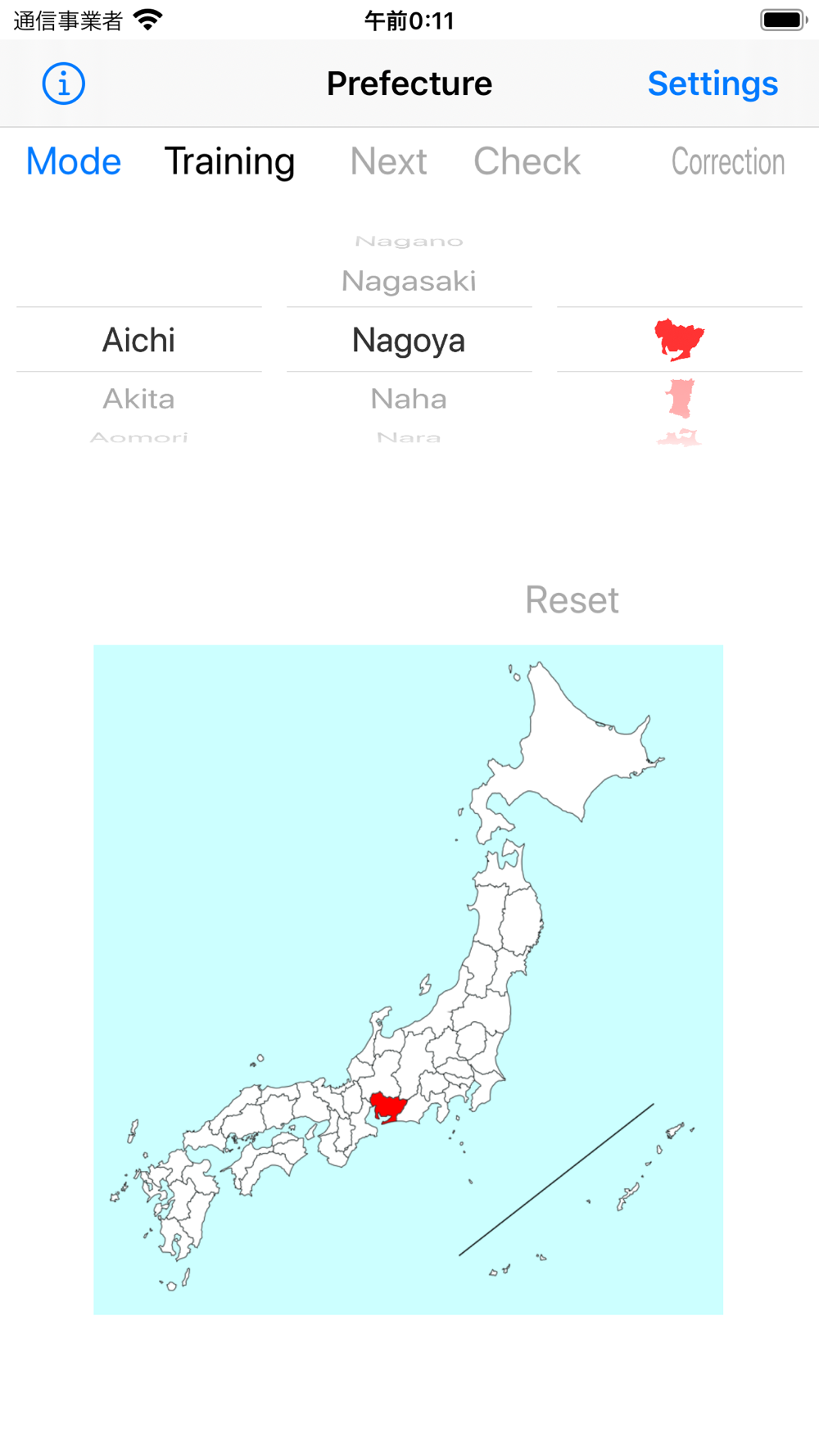 Puzzle application to make a correct set of the prefecture name, capital city name and map position in Japan.