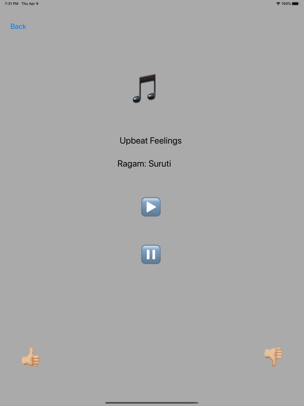 Easy to use for all, including the differently-abled! Simply tap on a negative emotion you feel and find lovely Carnatic music to cheer you up!
