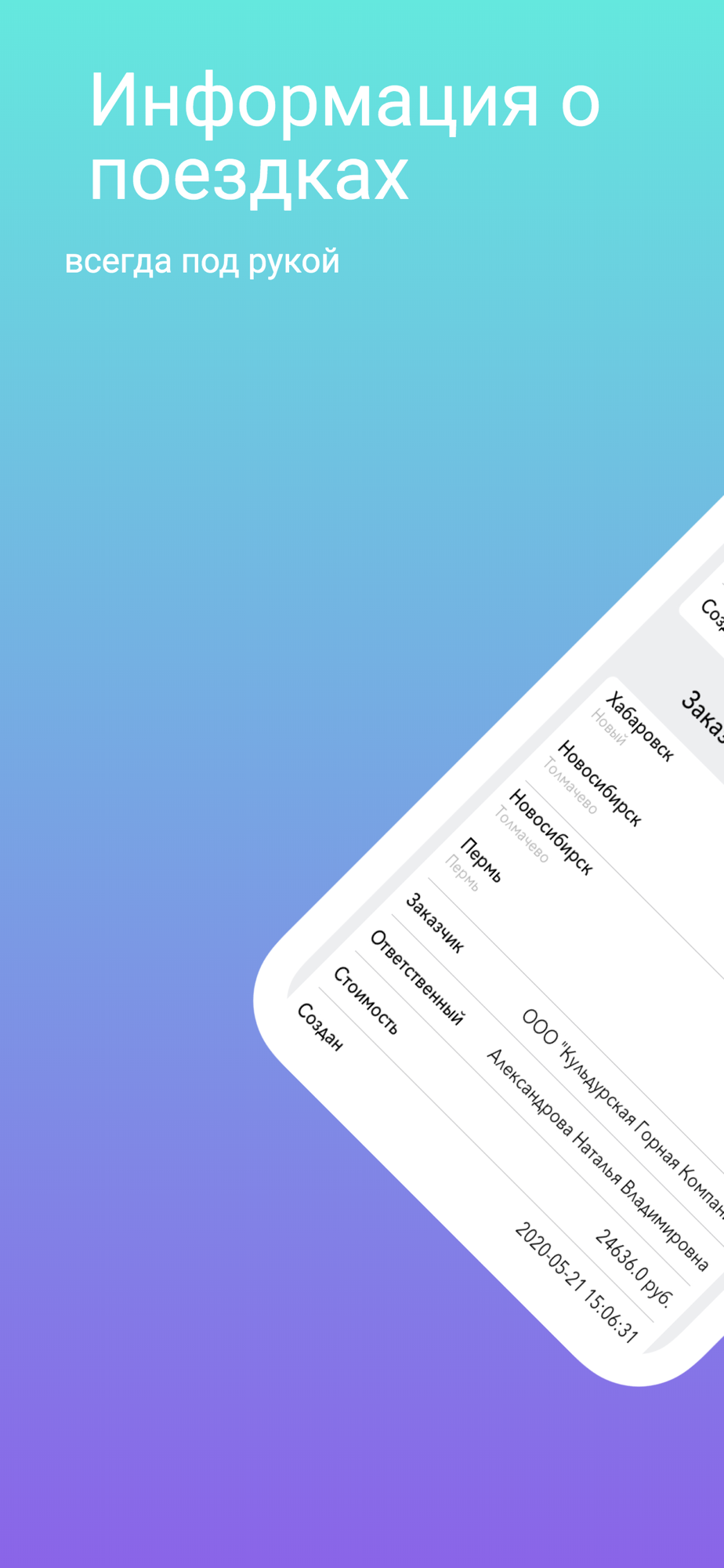 - сократить время на поиск информации о вашей командировке, так как все детали по забронированным авиа или ж/д билетам всегда в вашем мобильном